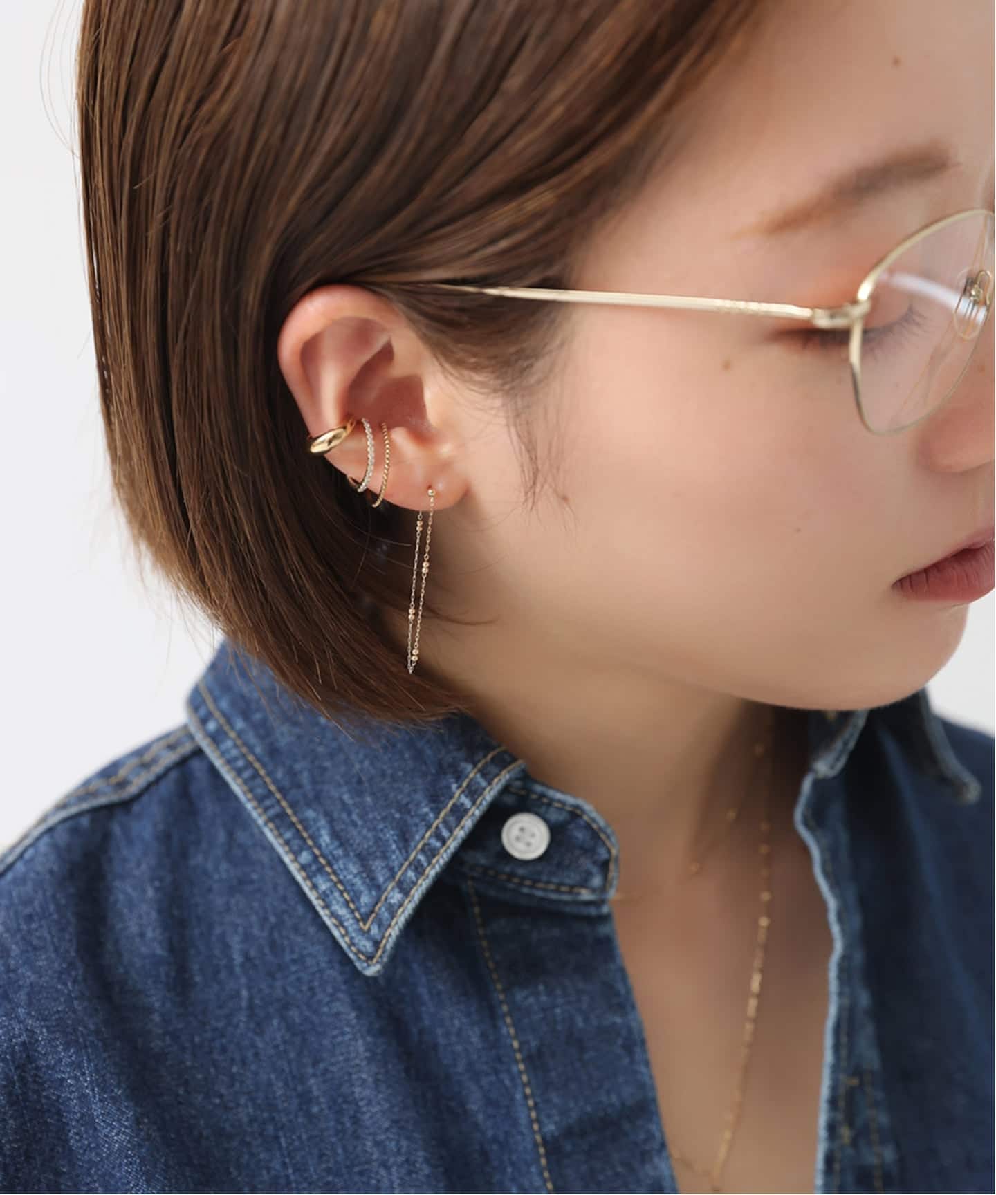 イヤーカフを重ねてアクセントの効いた耳元に仕上げました。