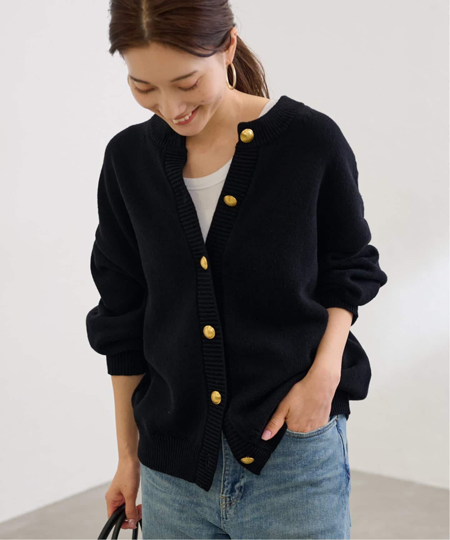 バルキーなアクリルとウール混紡糸で編み立てた、ボリューム感に軽さを兼ね備えた一枚。