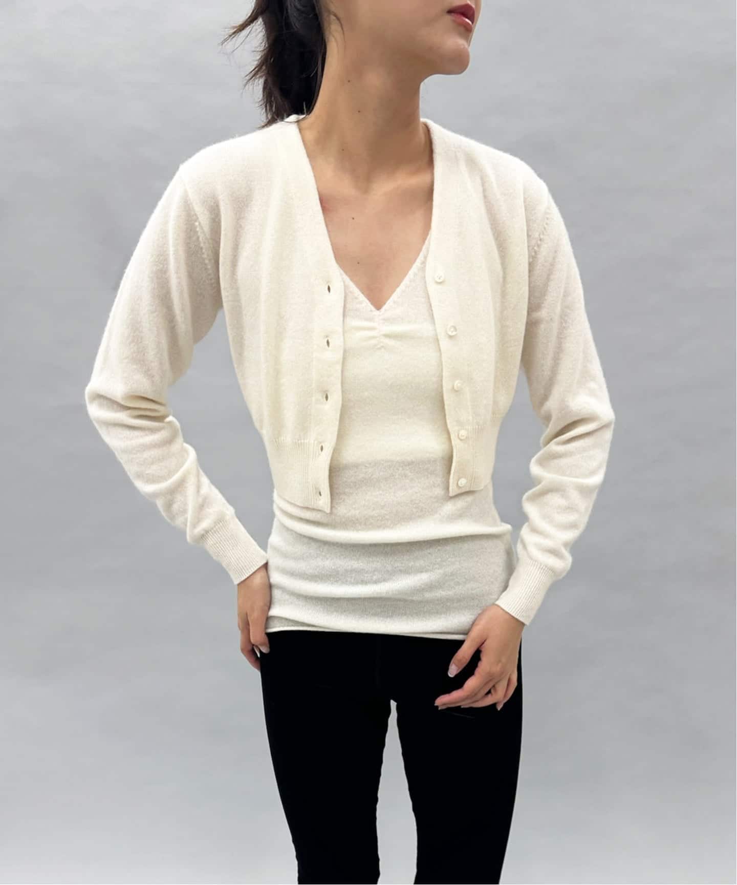 |1. カシミヤVネックカーディガン