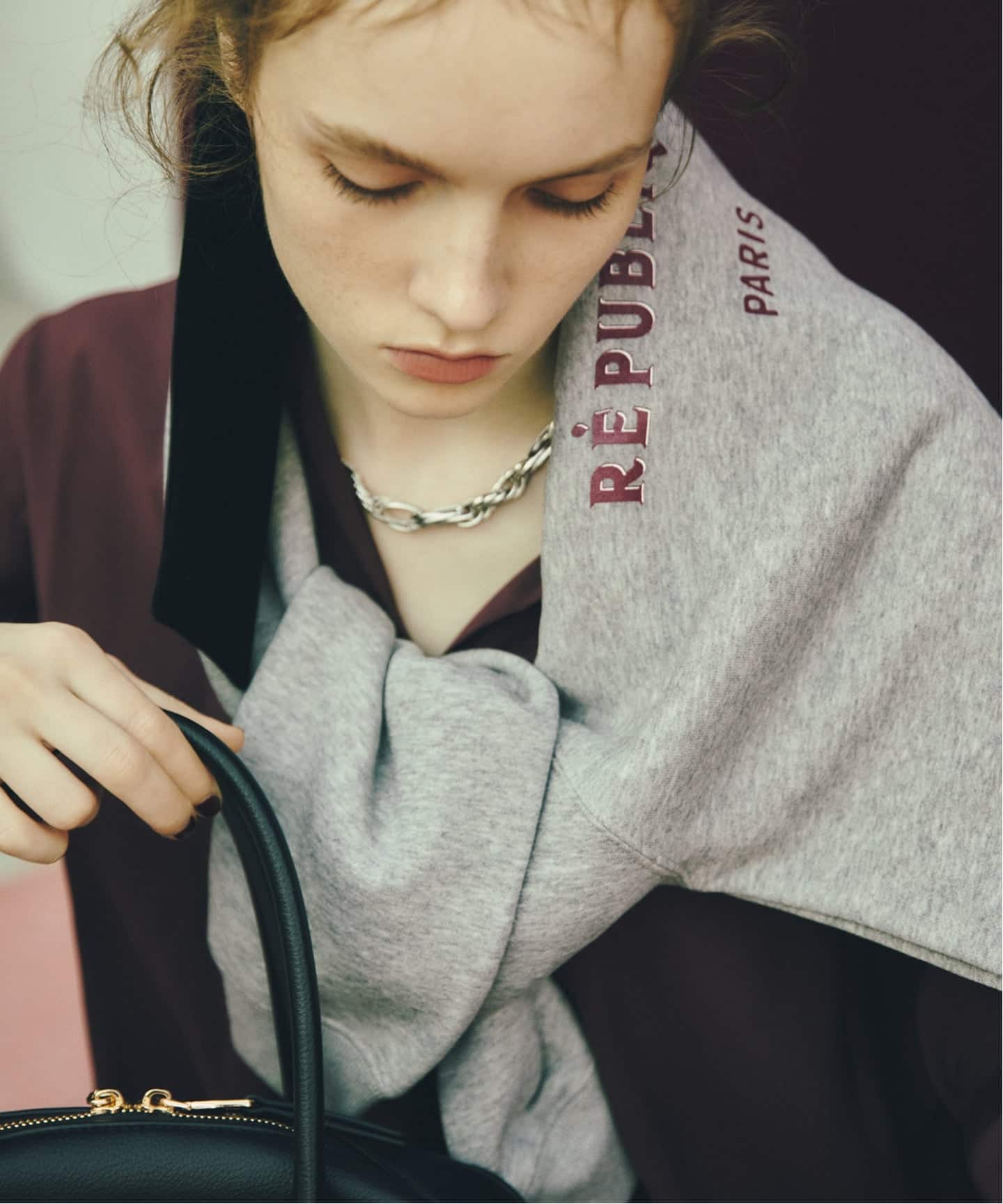 この素材感を活かすなら、ANGE IN DISGUISEのスウェットでカジュアルムードのトーンコーデを。