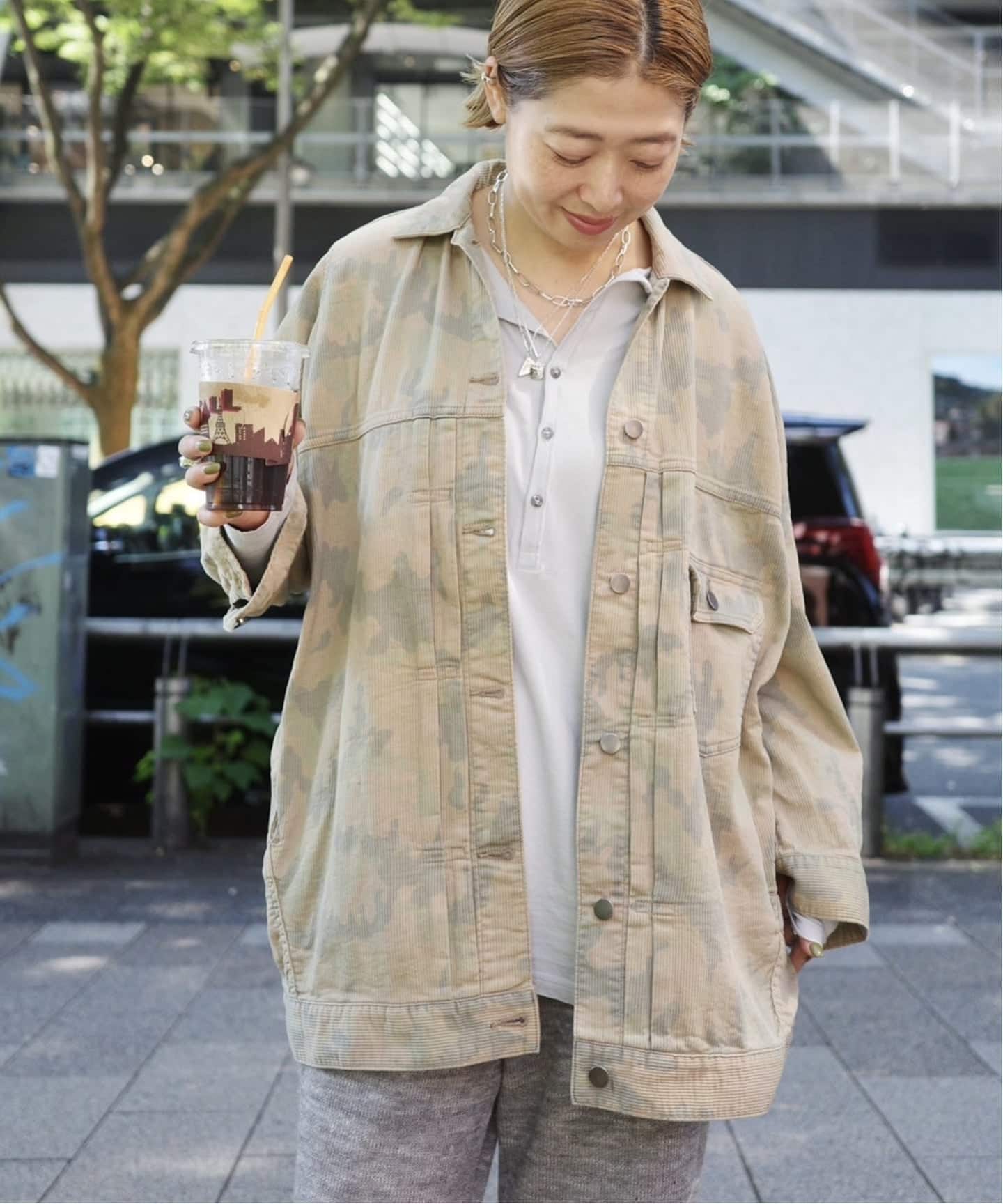 程よい畝のピケ素材の表に顔料でプリントされた迷彩柄を使い、ストーンバイオ加工で仕上げたジャケット。