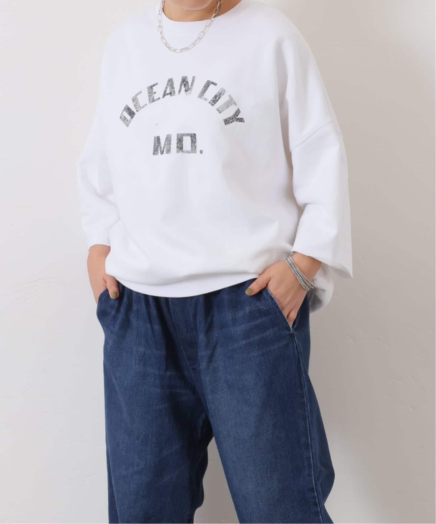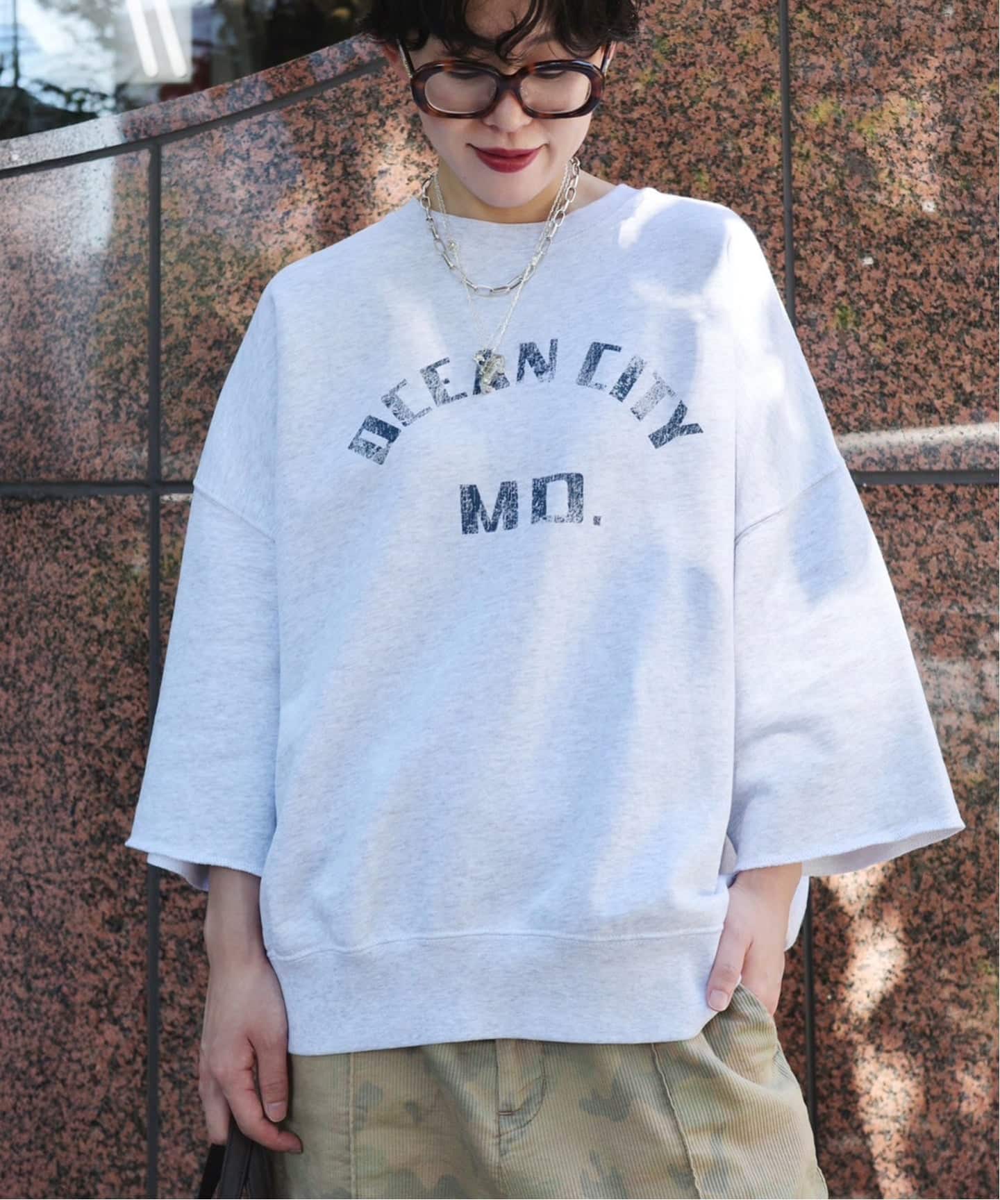 カレッジ風のロゴが入ったプリントスウェット。程よい厚みの10オンスの既製ボディのスウェットの袖をカットオフし、リメイクして仕上げました。軽く、柔らかい着心地です。
