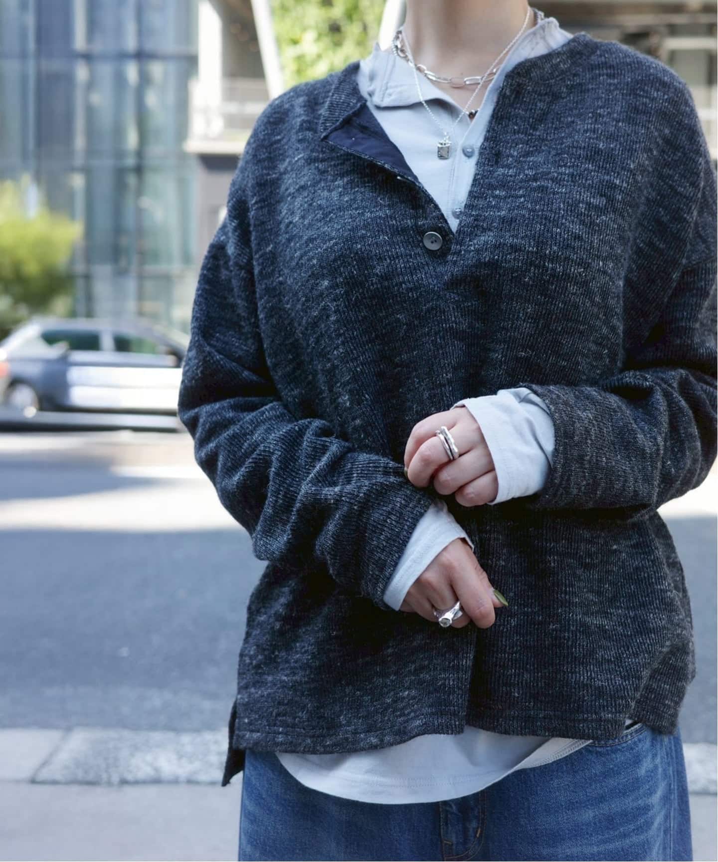 シェットランドウールとリネンの糸を使った、ゆったりとしたシルエットのヘンリーネックプルシャツ。