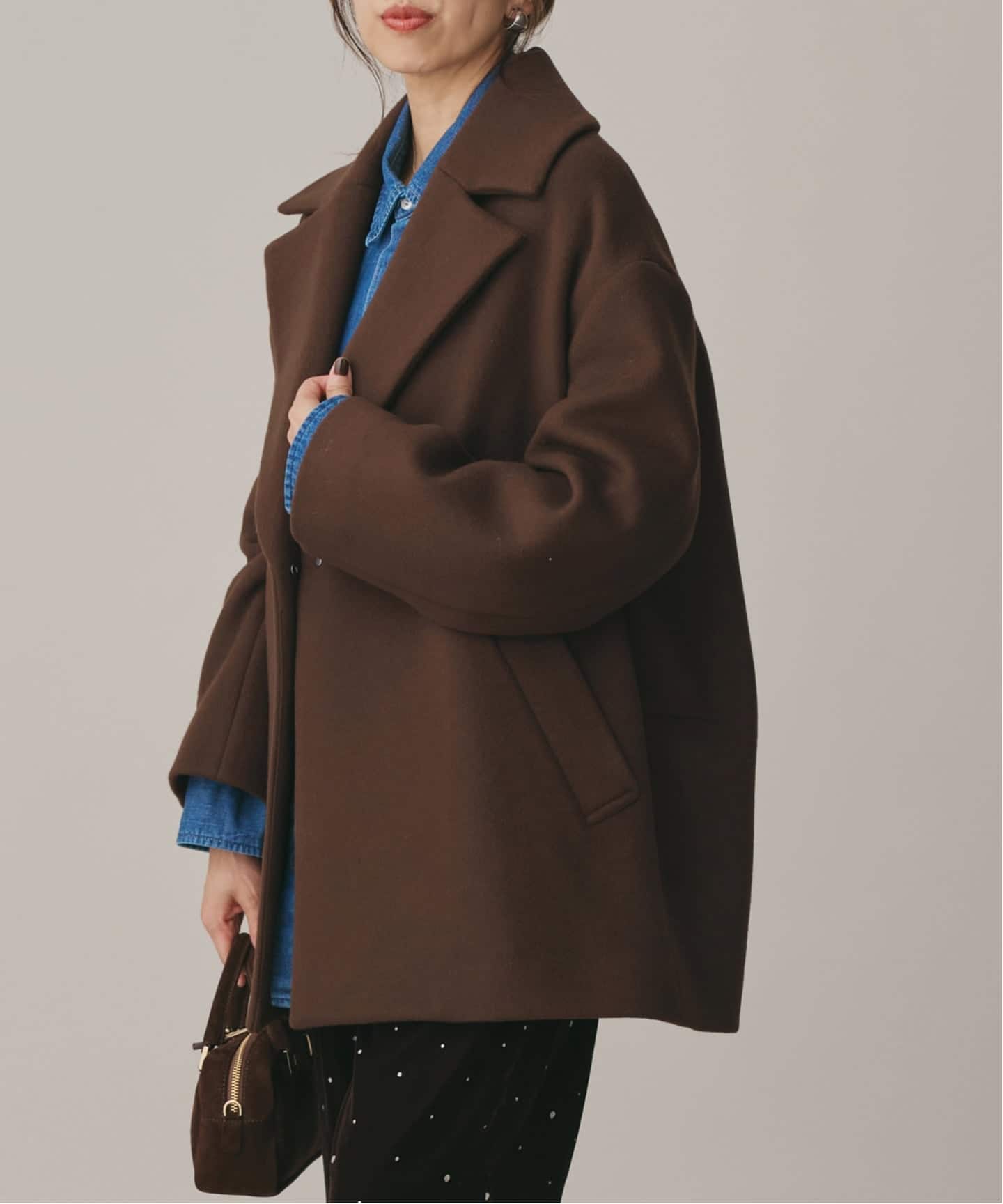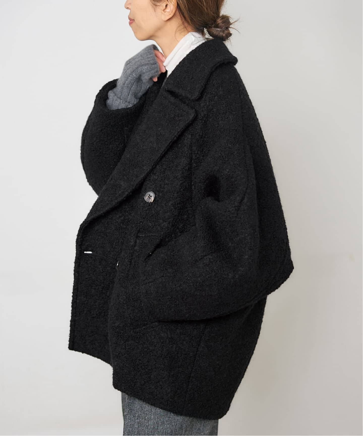 凹凸感のある柔らかい上質な素材を使用した、クラシカルさとモダンさを兼ね備えたコクーンショートコート。