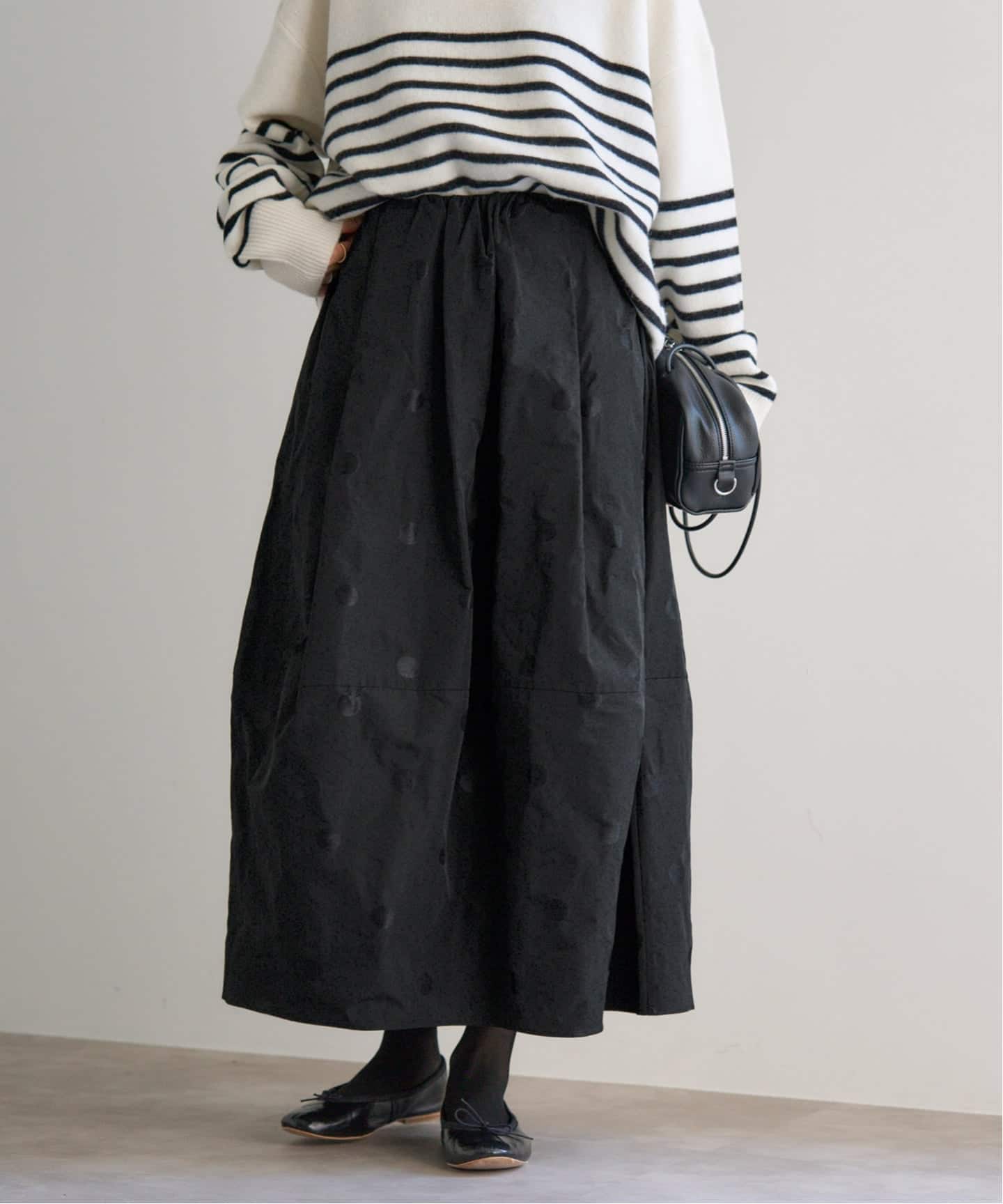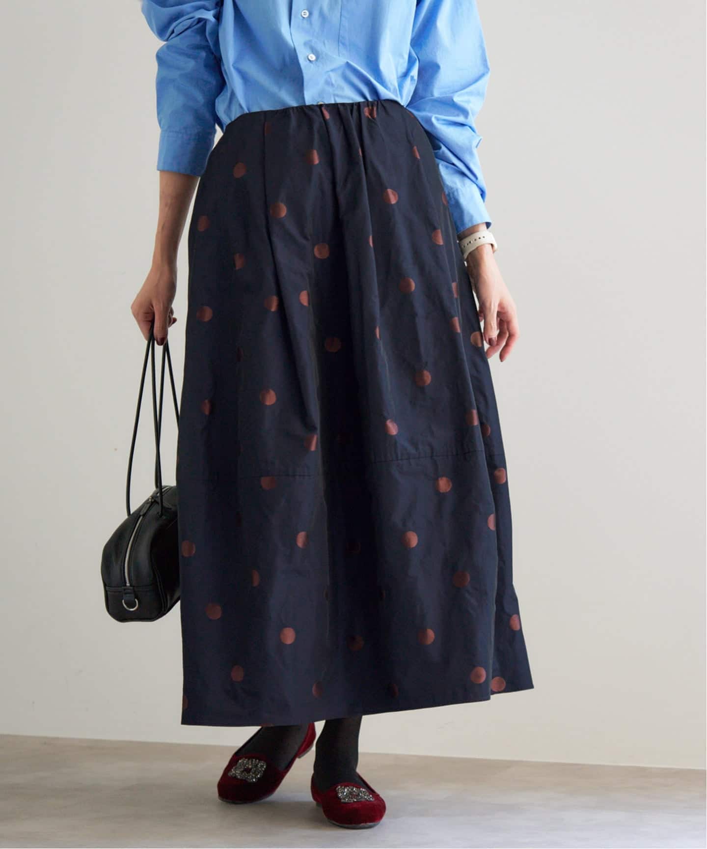 やや張りのあるタフタ素材が綺麗なシルエットを生み、スタイリングに表情をプラスするドットスカート。
