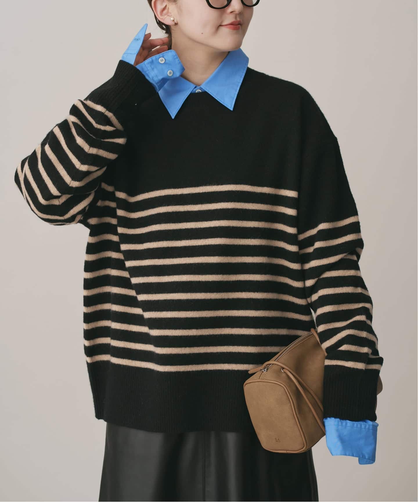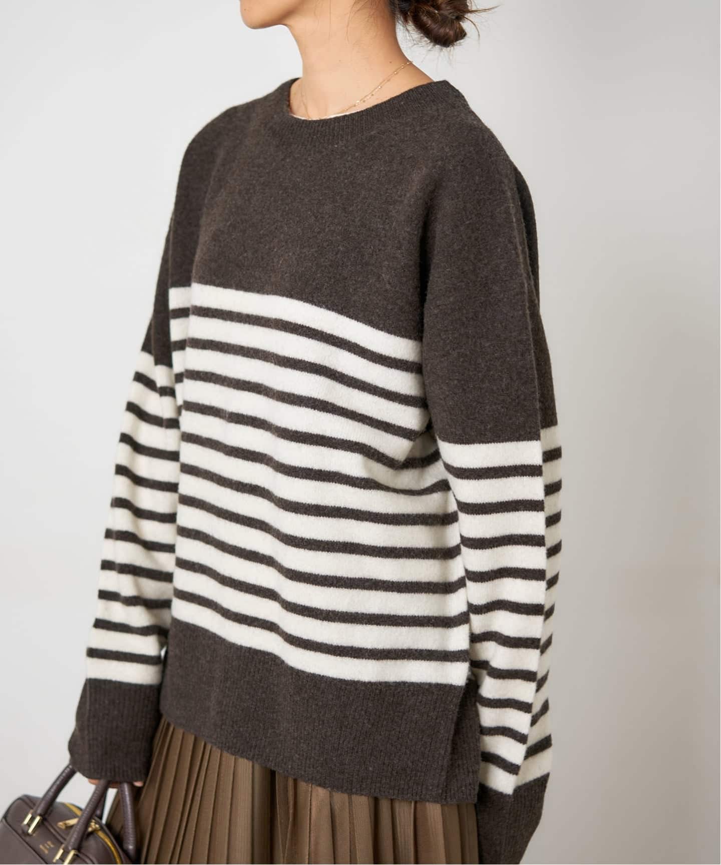 柔らかい風合いと軽くて着心地が良いのが特徴で、ゆったりとしたシルエットのパネルボーダーニットプルオーバー。