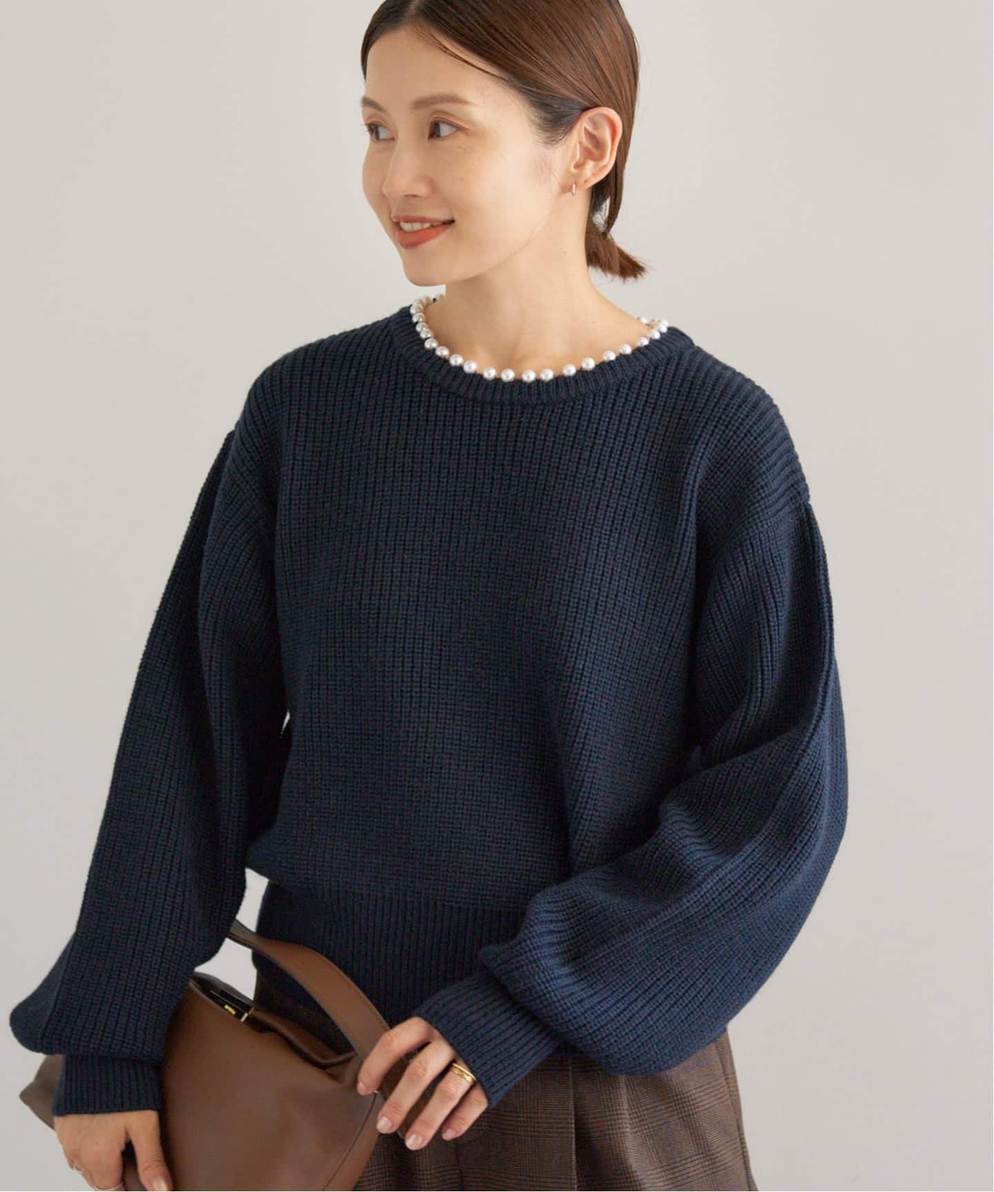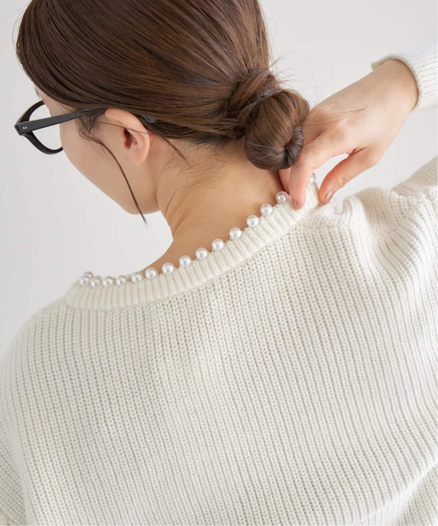 襟ぐりにあしらわれたパールディテールが、アクセサリーいらずで顔まわりを華やかに見せてくれるプルオーバー。