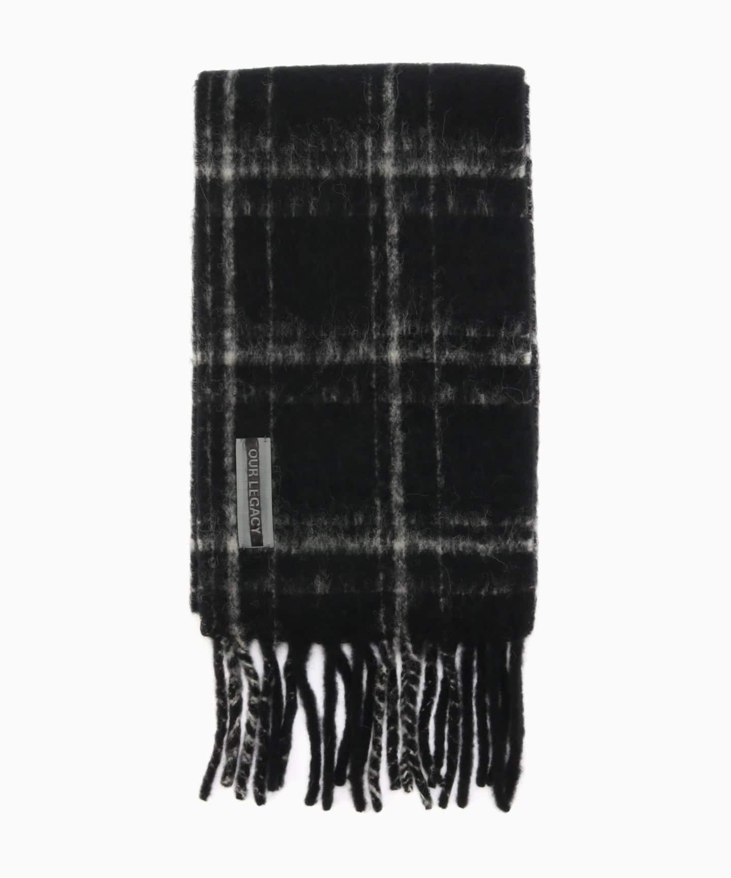 ・クラシックなチェック柄のマフラー。スタイリングのアクセントに。