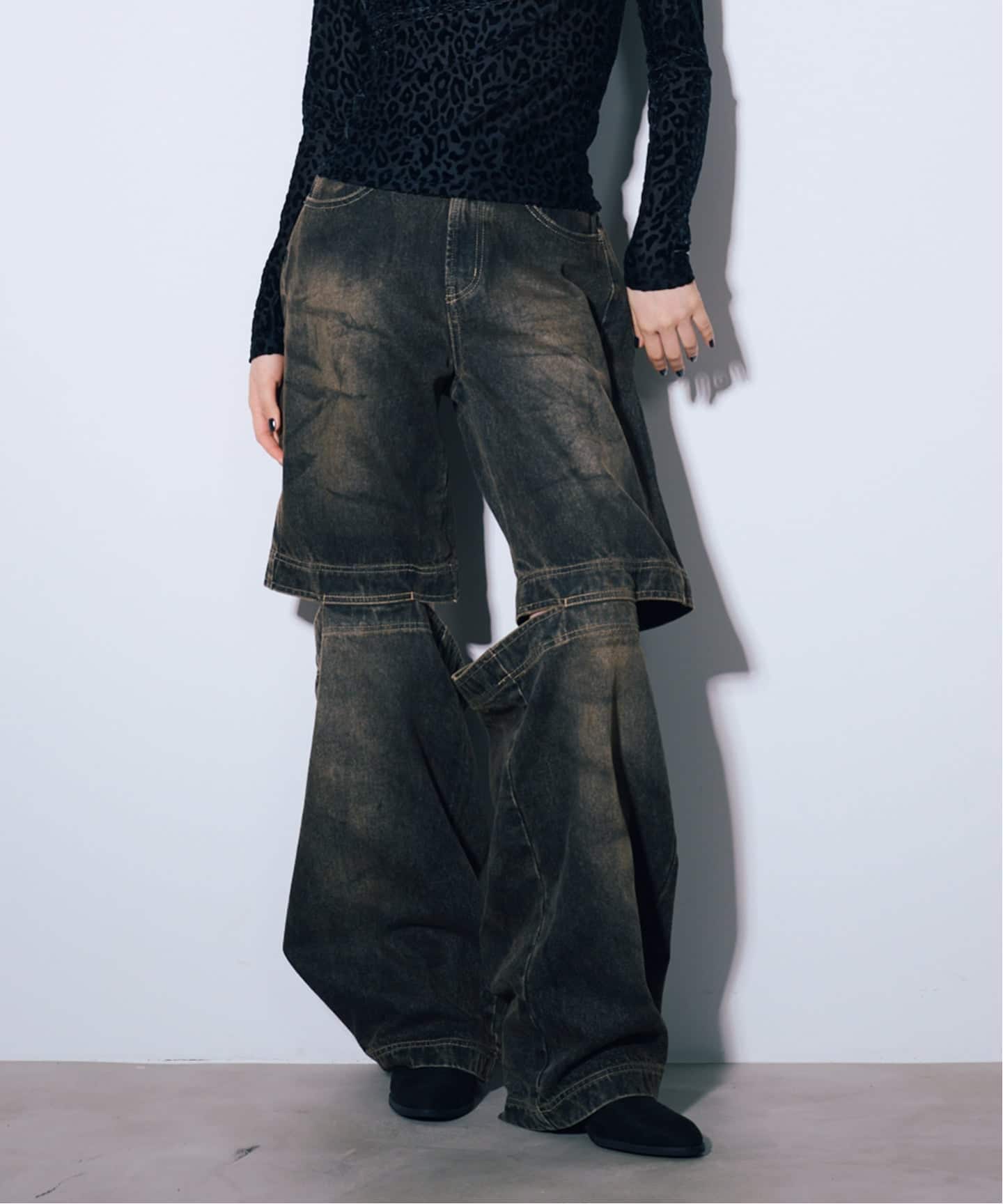 構築的な切り替えデザインで、唯一無二の存在感を放つデニムパンツ。