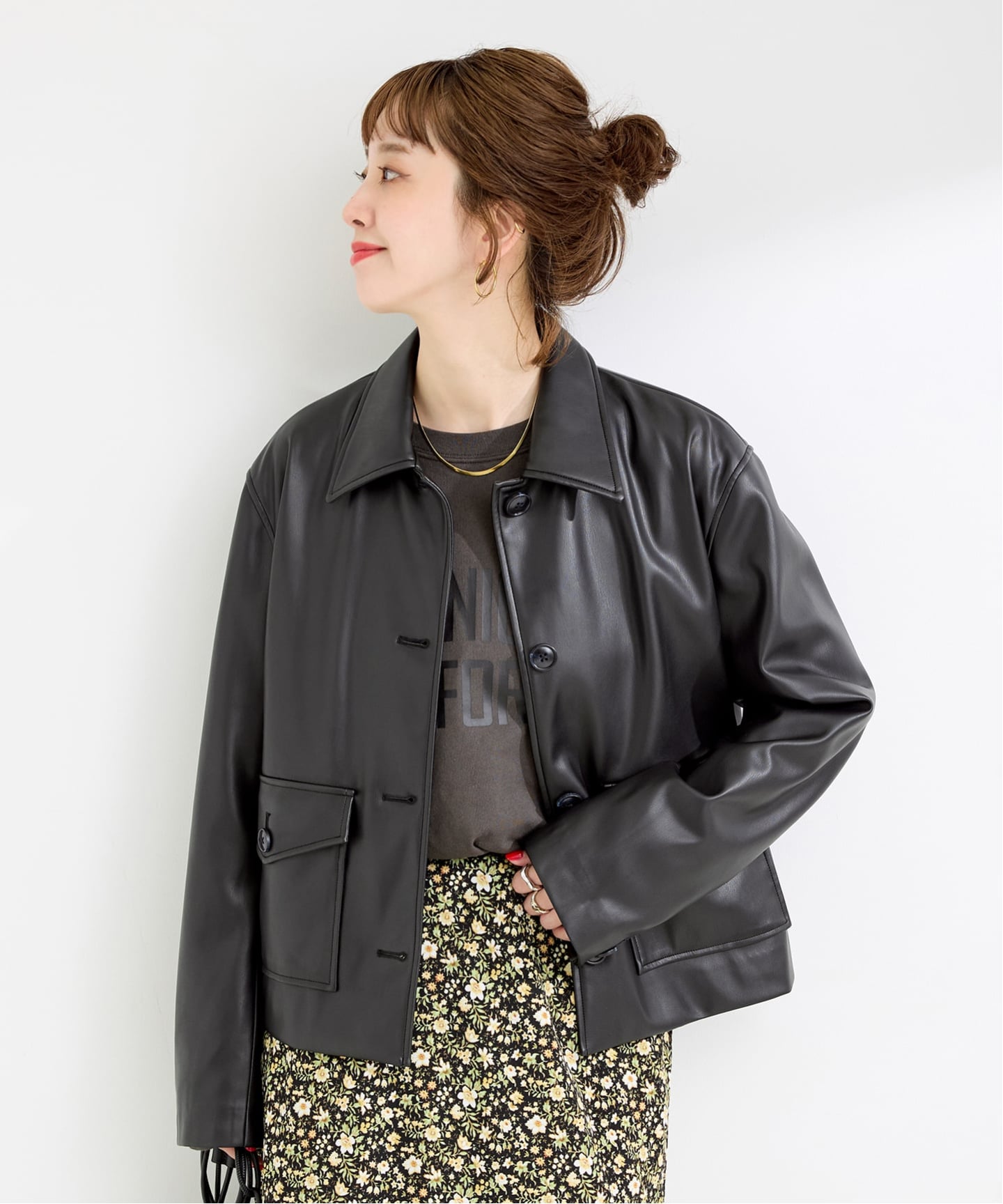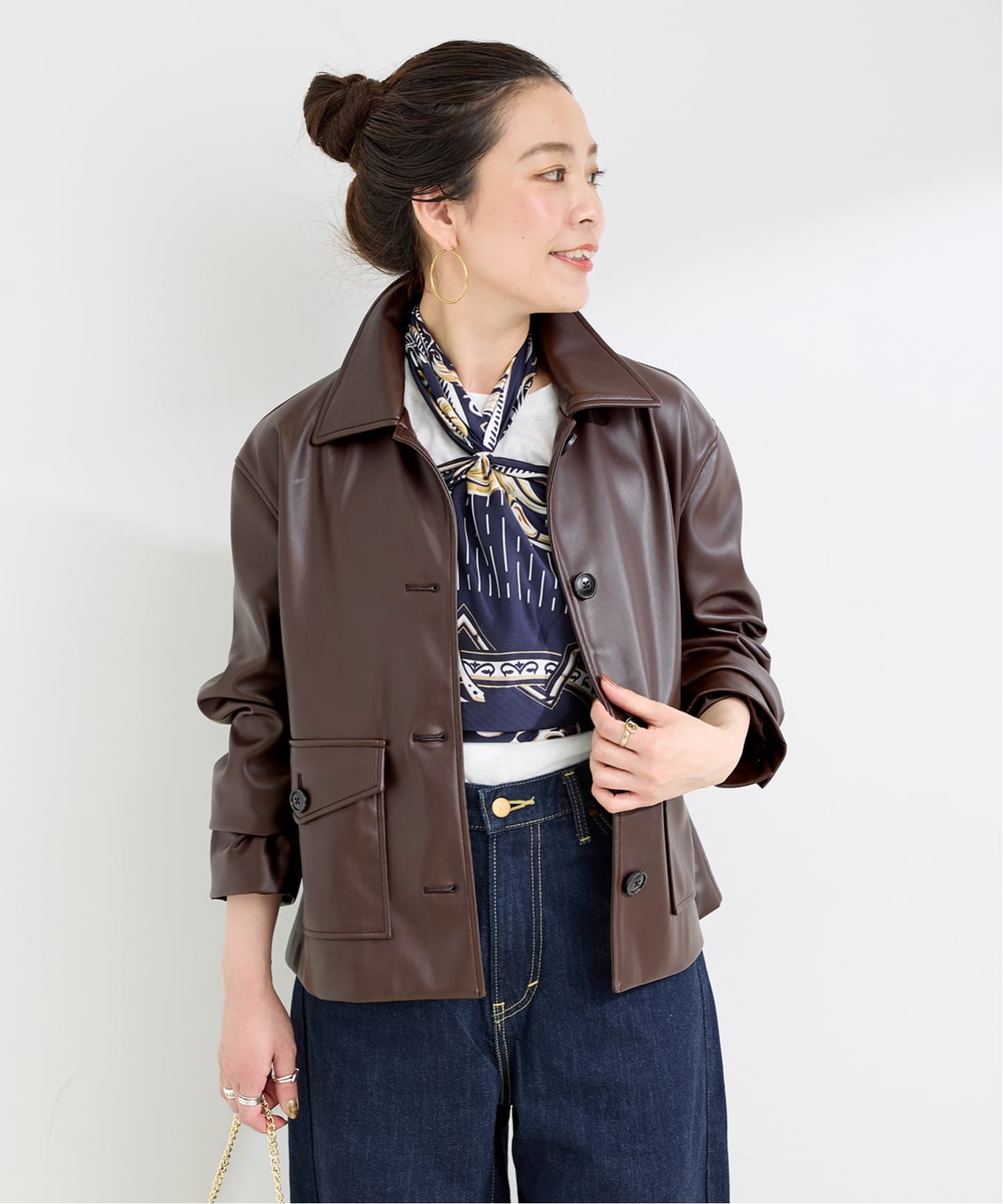 レザー調の質感は、羽織るだけでシーズンムードをプラスしてくれます。