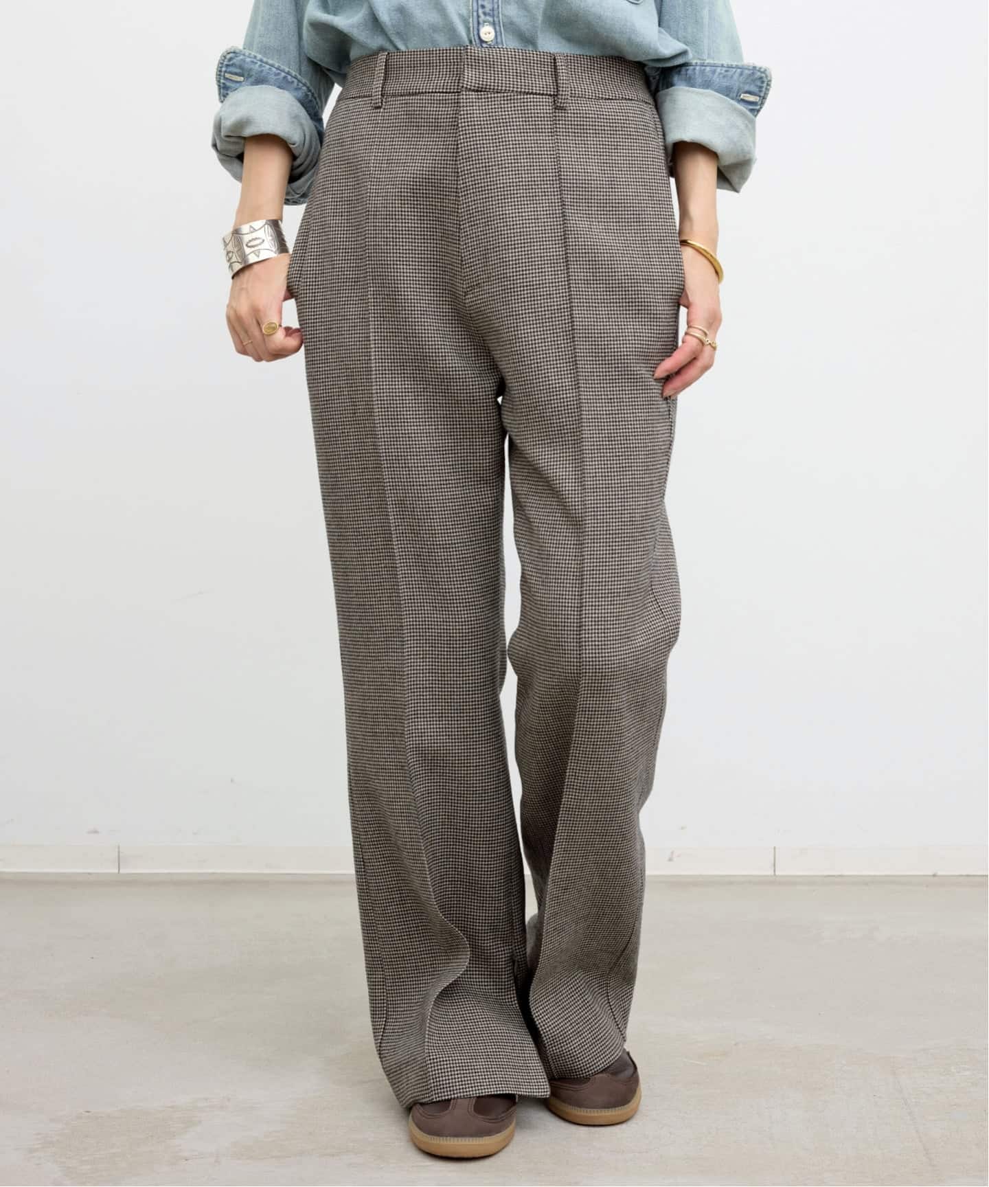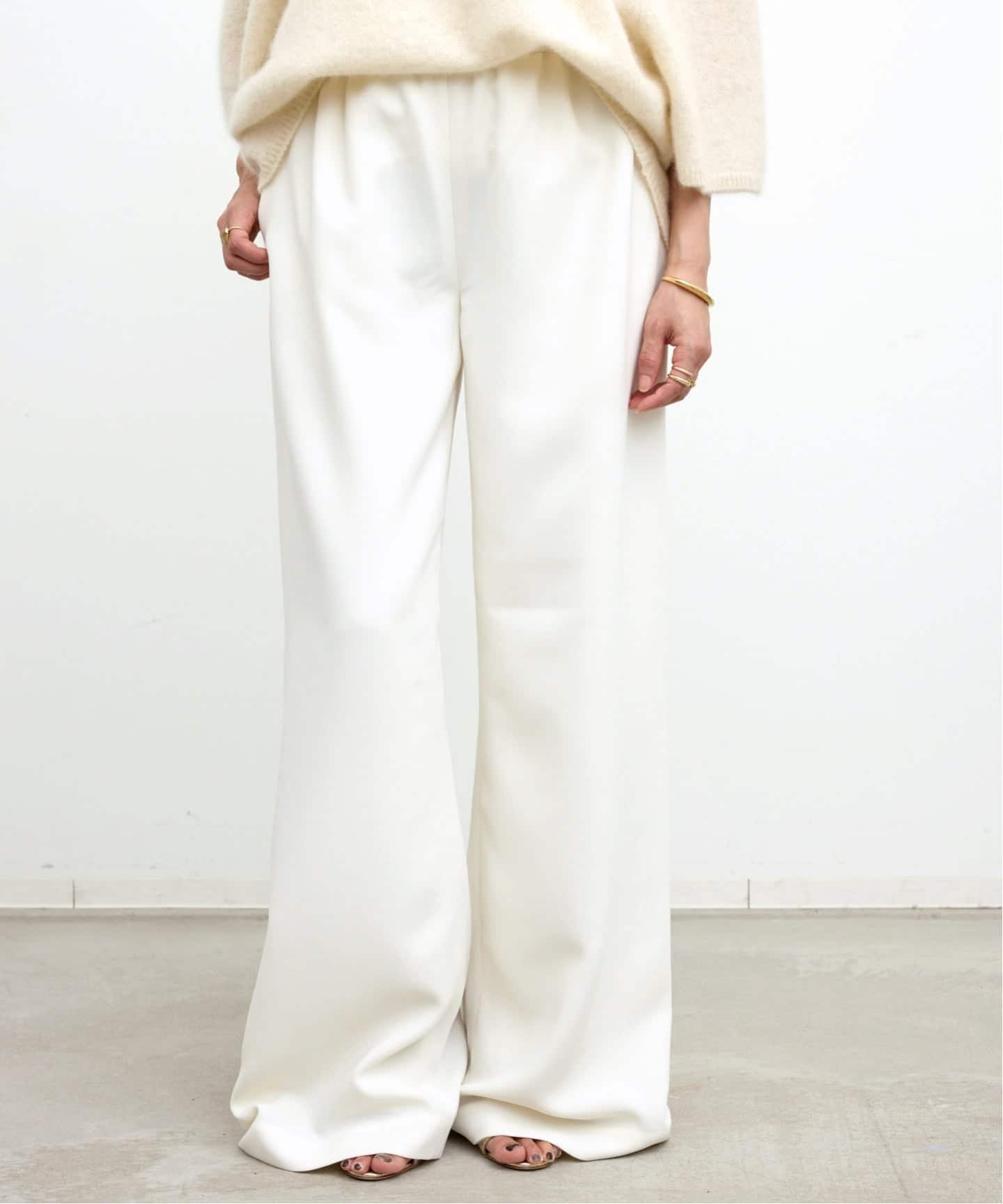 パンツはブラウスとあえて素材を変え、ベルベットタッチの柔らかな質感。ウエストゴムの快適なはき心地も魅力です。程よくゆとりのあるストレートシルエットに別注し、フラットからヒールまでシューズも選ばないバランスに◎