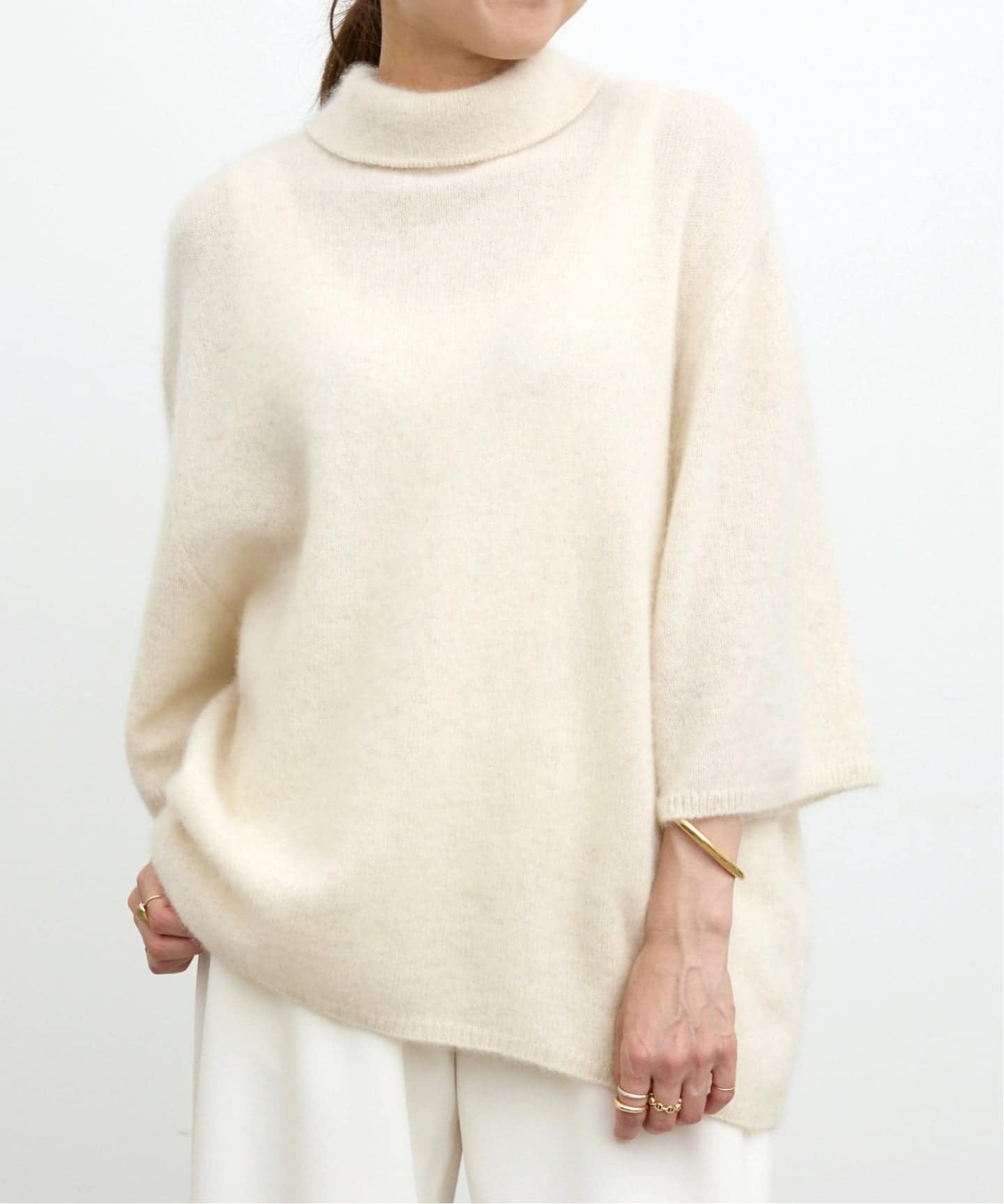 ヤクを使用したふっくらとやわらかな着心地と、1枚で華やかに見えるワイドなハーフスリーブデザイン。クリーンなウィンターホワイトのスタイルで、重くなりがちな秋のカラーパレットに鮮度をプラスしてくれます。