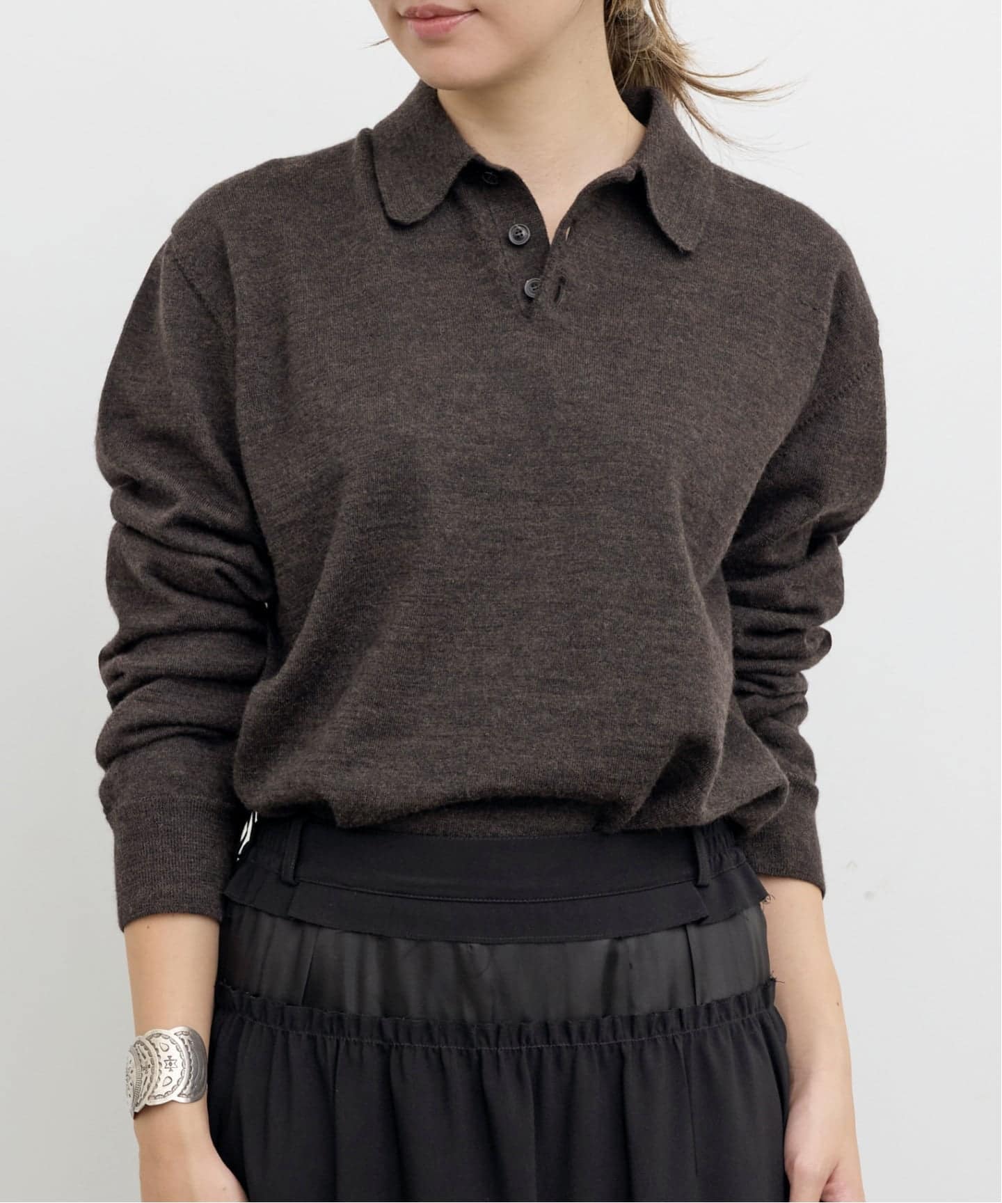 ブランドのアイコニックなレザーのエルボーパッチが施されたポロニット。上質なウールを使用し、さらりとした着心地も魅力です。