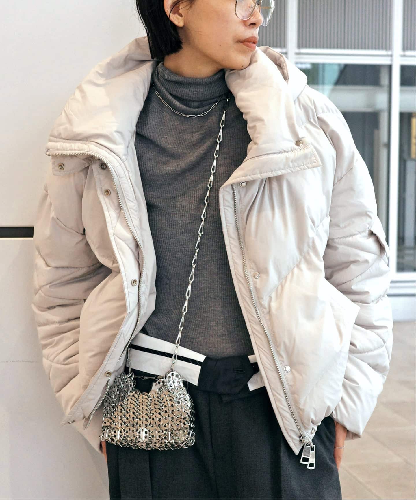 Aラインシルエットが印象的なミドル丈のパディングコート。
