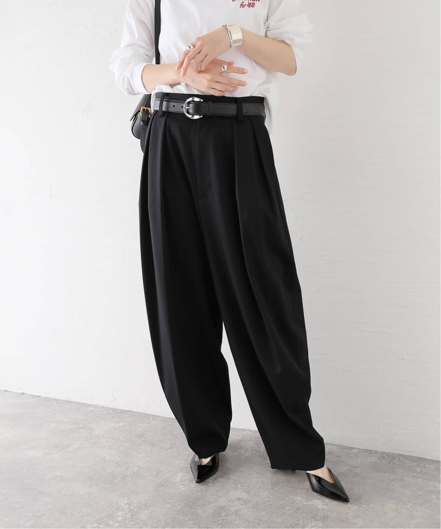 パンツは裾が窄まったデザインでスラックスでも一味違った印象に。