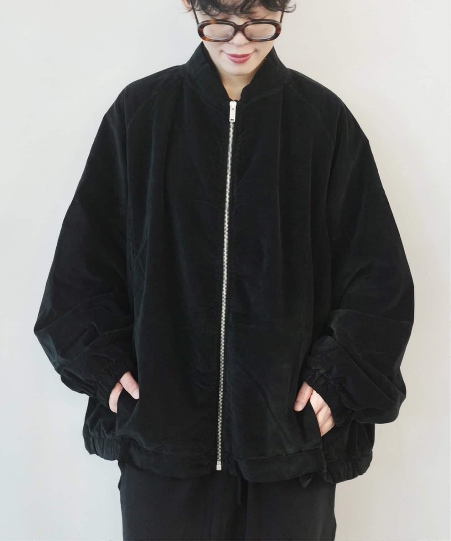 ニューモデルのVELVET素材のボンバージャケット。たっぷりした身頃と長めの袖丈がポイントです。ロングシーズン着用いただける、軽やかな着心地となっています。