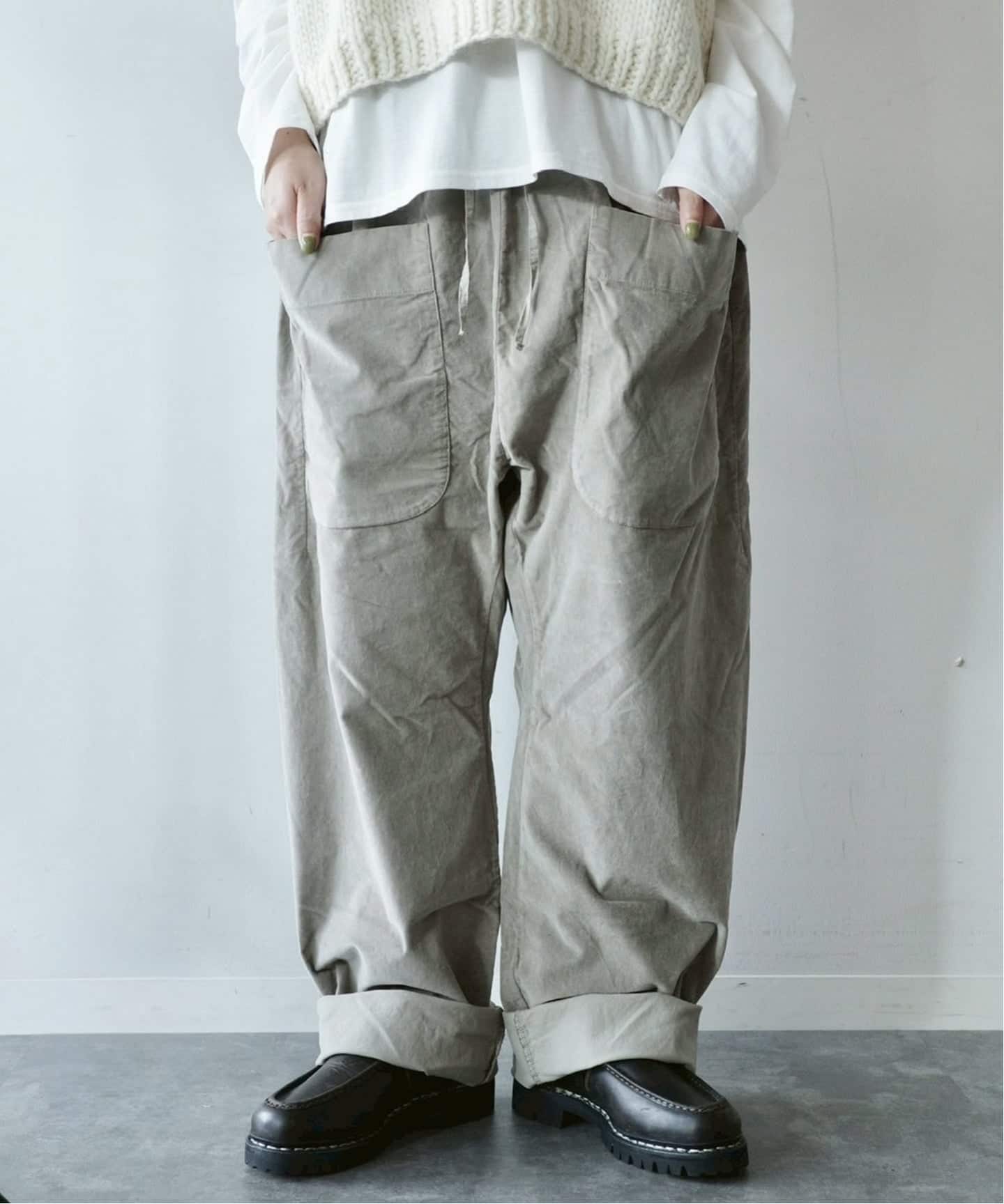 ALBUMらしい、ワイドシルエットのイージーパンツ。VELVET素材。ヒップの大きなポケットもポイントです。(身長162cm着用)