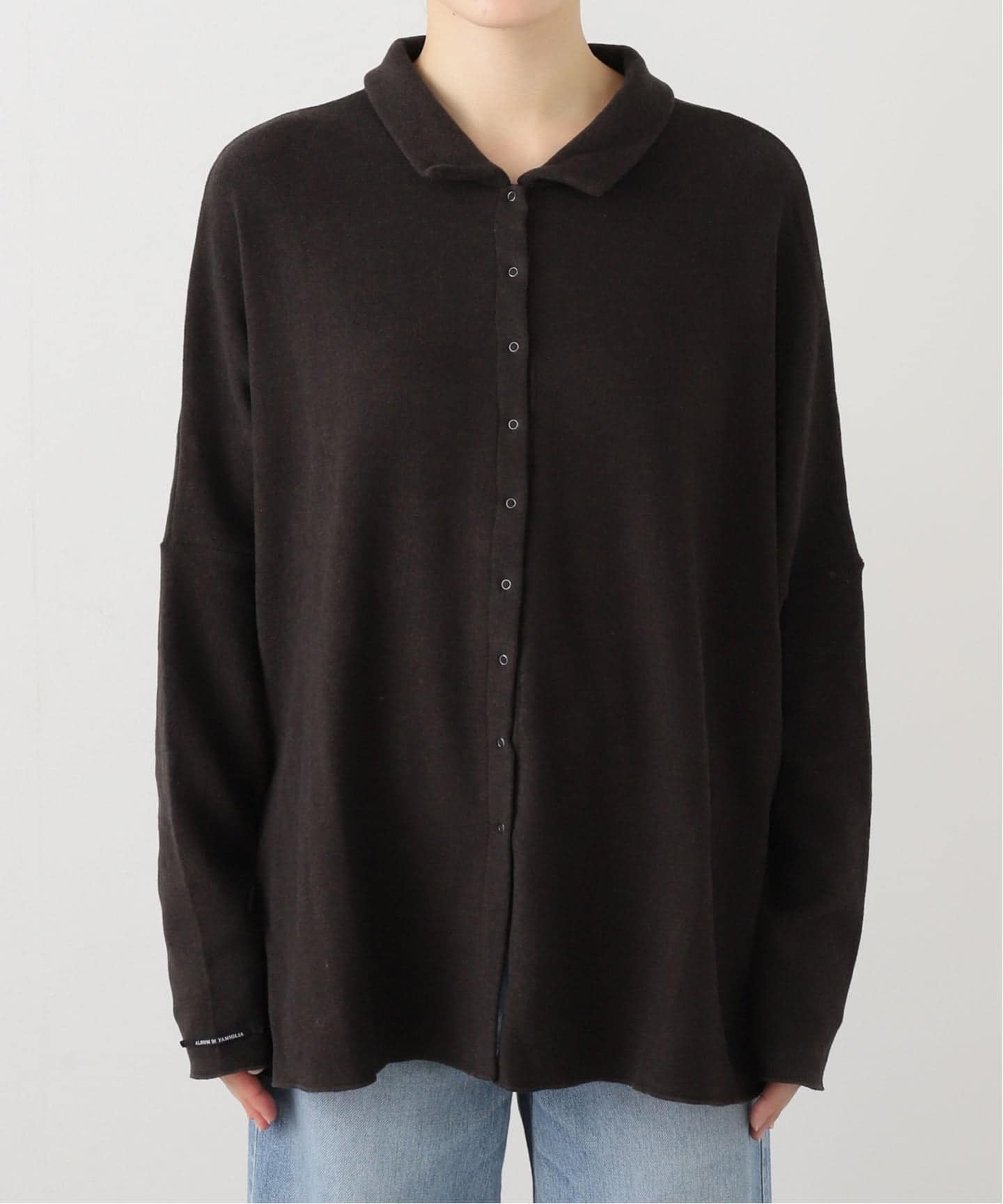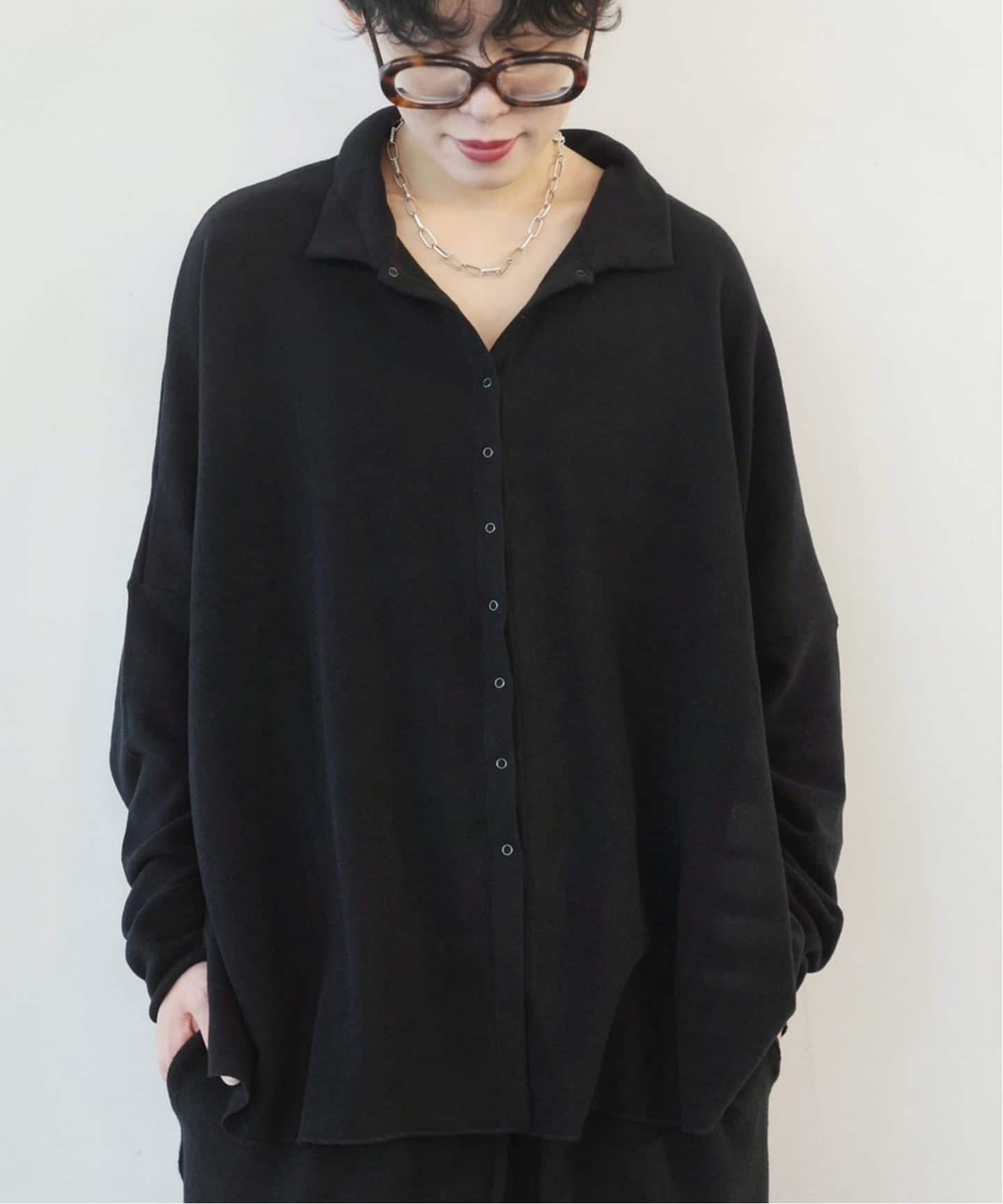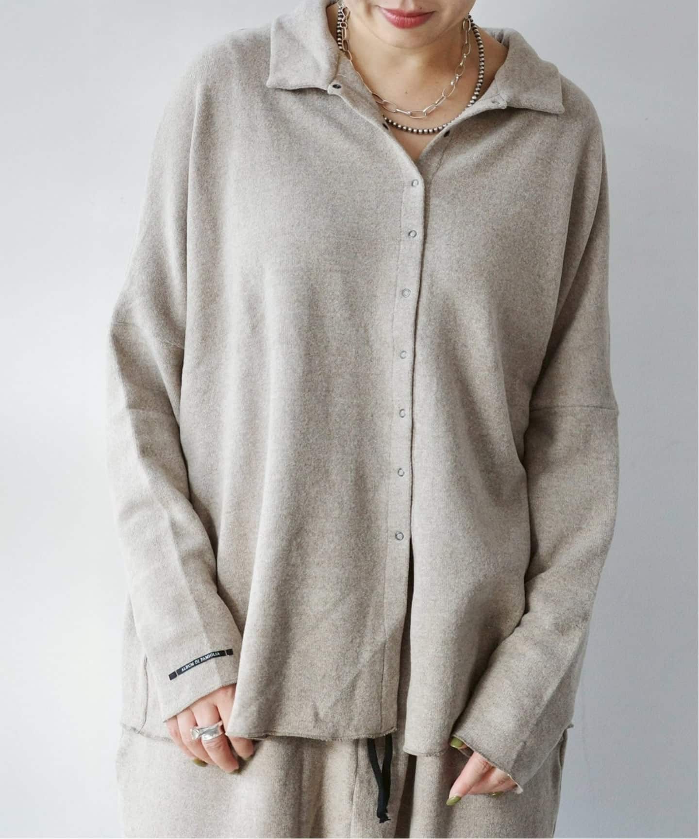 JERSEY素材の襟付きカーディガン。羽織りとしてはもちろん、ボタンを留めて着ていただくのもおすすめ。柔らかく、あたたかな着心地です。