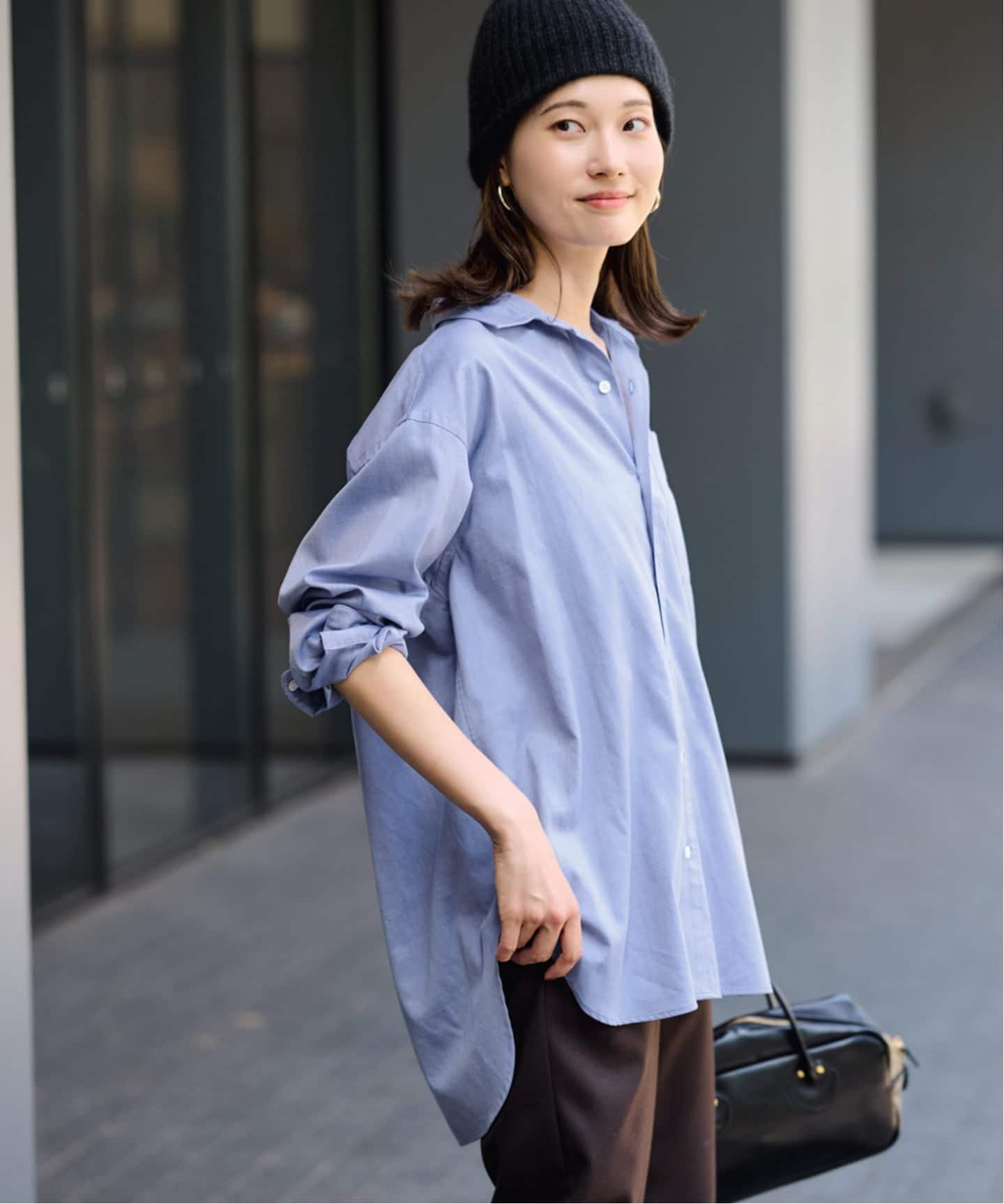柔らかくやや薄手の生地感で、早い時期から着用が可能な一枚です。