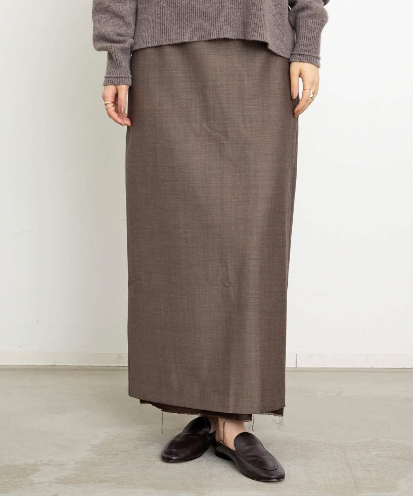 タイトシルエットでミモレ丈、深めのスリットがエレガントなスカートはロングブーツと合わせても今年らしいスタイルになります。
