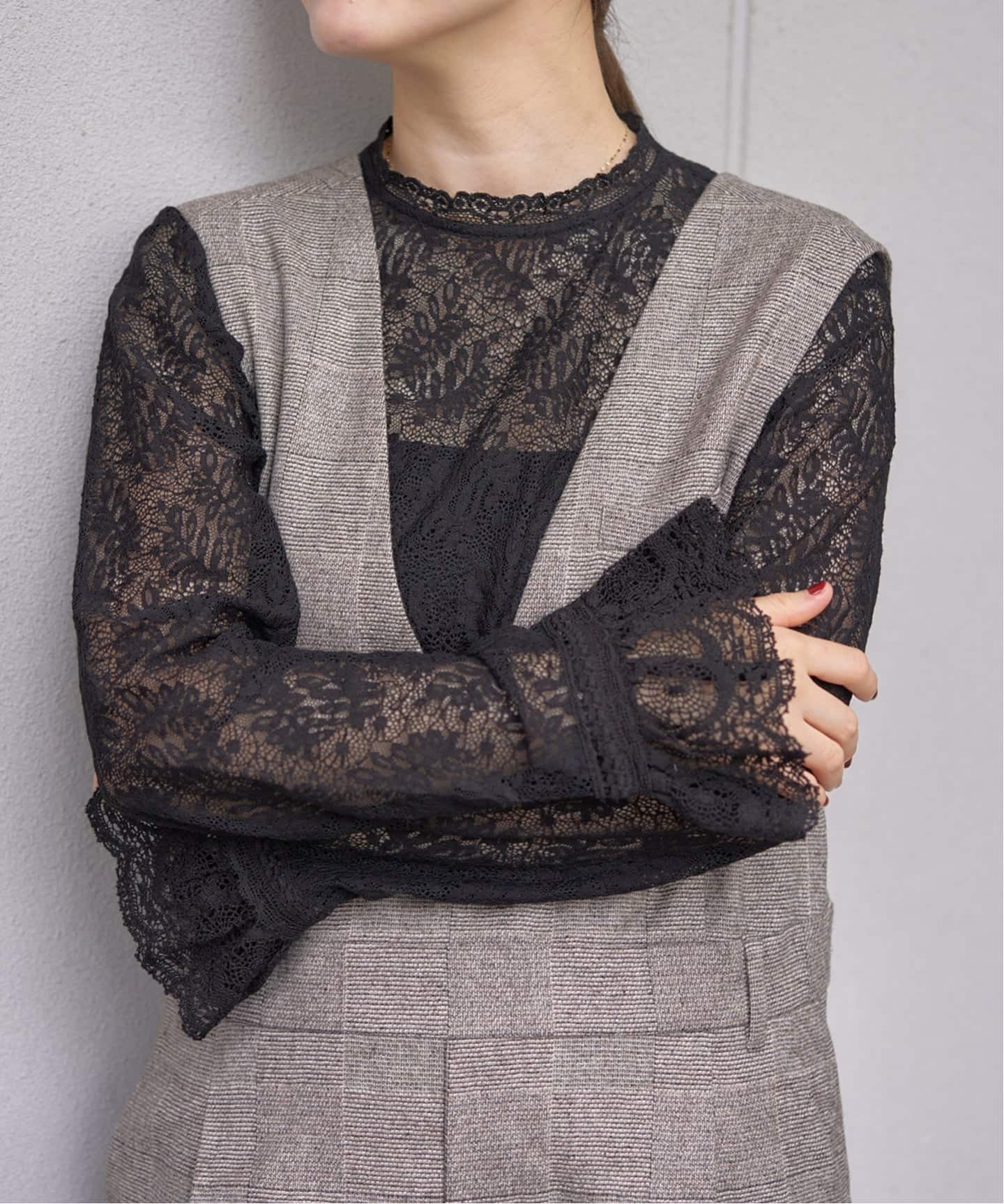 リーフ柄のレースがコーデに華やかさを与えてくれる映えブラウス。