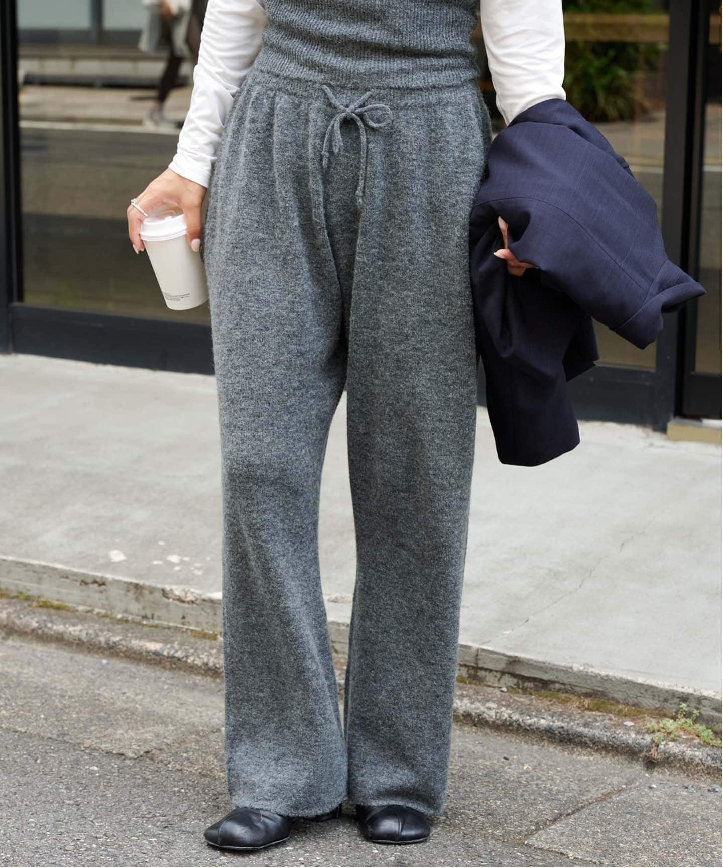 アルパカミックスの糸で軽くて暖かく高い防寒性能とミドルゲージの適度な厚みが程よいジョガーパンツ。脇の接ぎのないフラットな作りのワイドなシルエットで裾リブの無いデザインにしました。