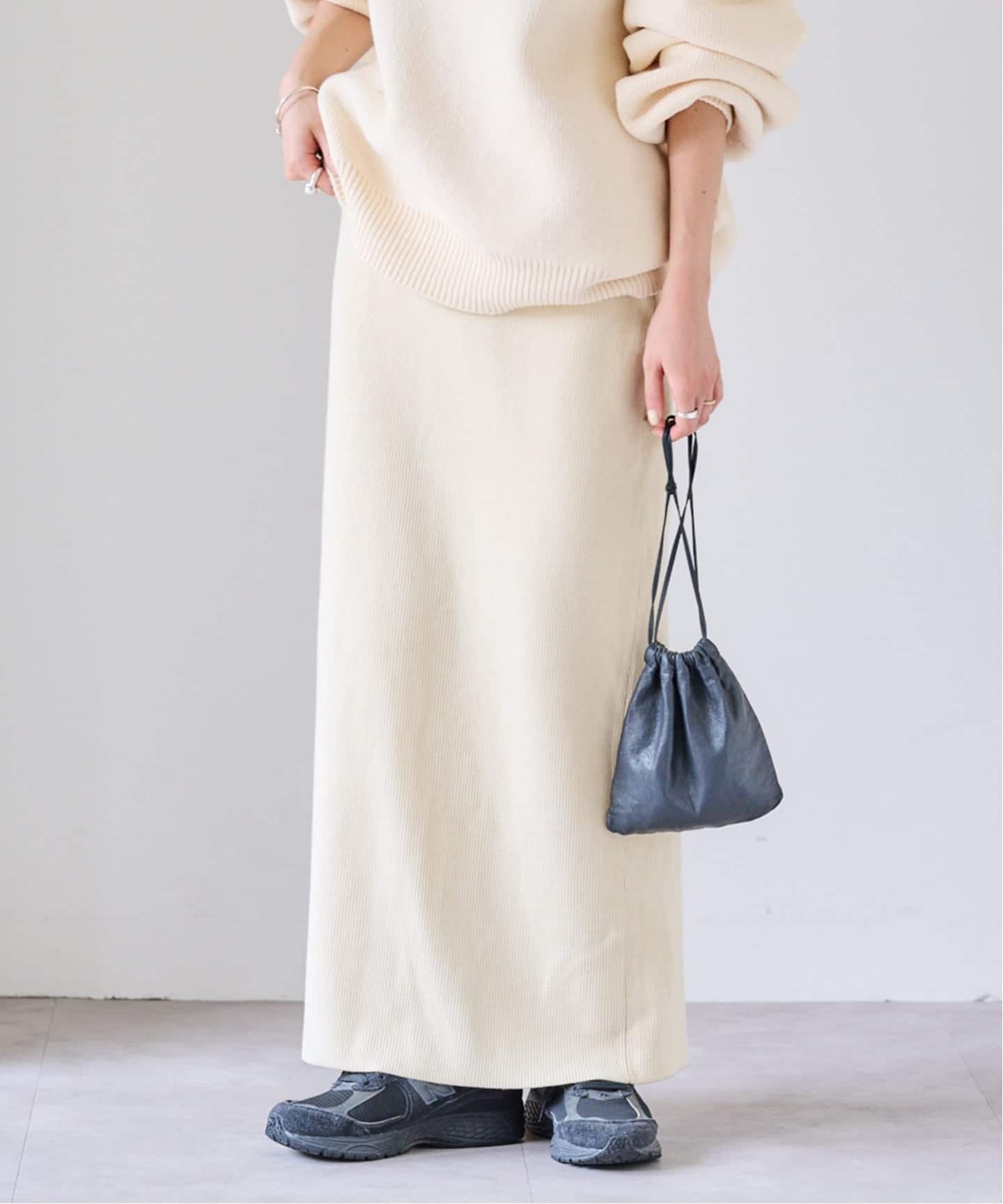 Tシャツやシャツなど、ベーシックなトップスに合わせるだけでスタイリングが決まる一枚です。ニットならではの柔らかさときちんと感を兼ね備えた着こなしが楽しめます。