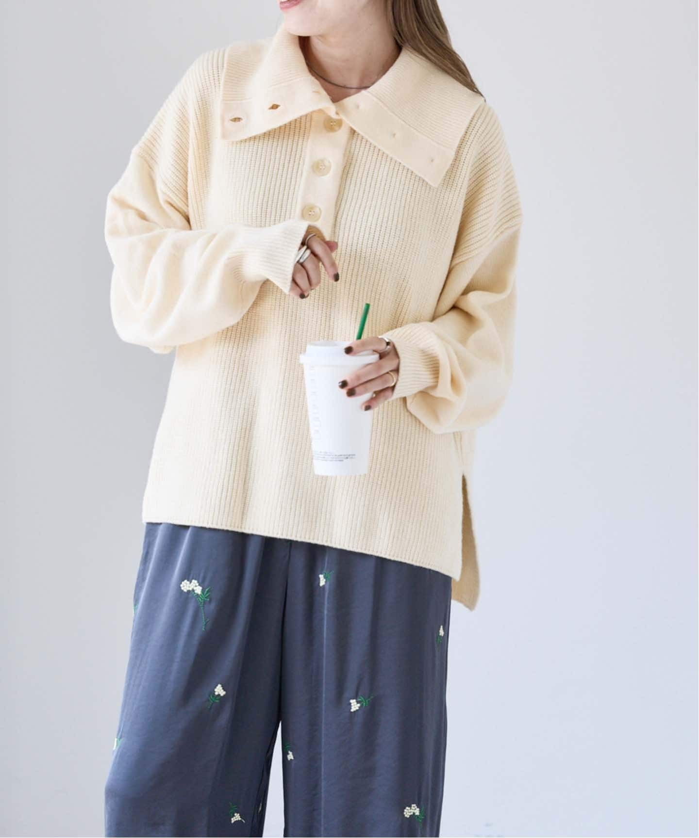 アルパカミックスの糸で軽くて暖かく高い防寒性能とミドルゲージの適度な厚みが程よいニット。同素材で組み合わせたセットアップがおすすめです!