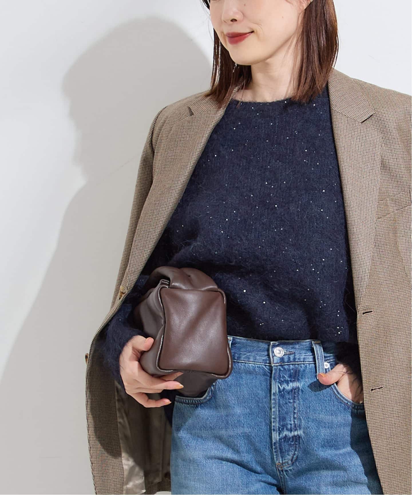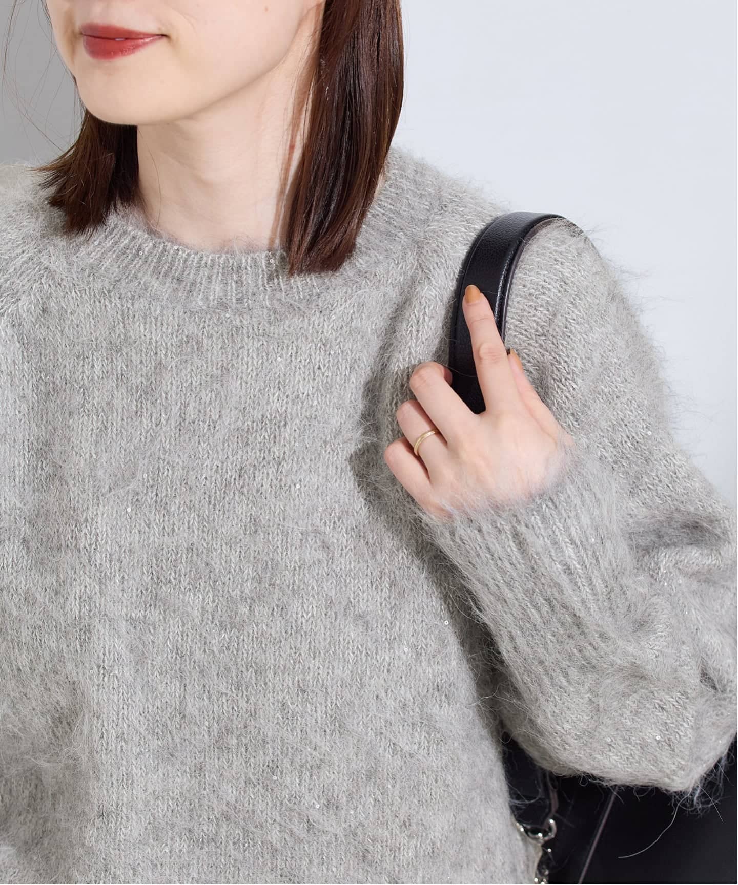 アルパカ混の軽い素材でざっくり編み込んだ軽やかさが特徴のニットプルオーバーは今年もトレンド継続中のスパンコールが華やかな印象に。