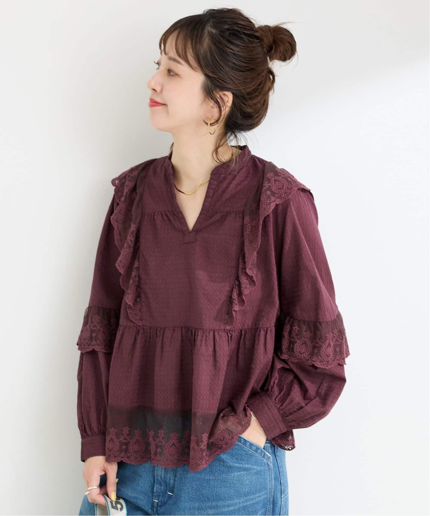 《追加7予約》手洗い可 / パフスリーブジャガードブラウス