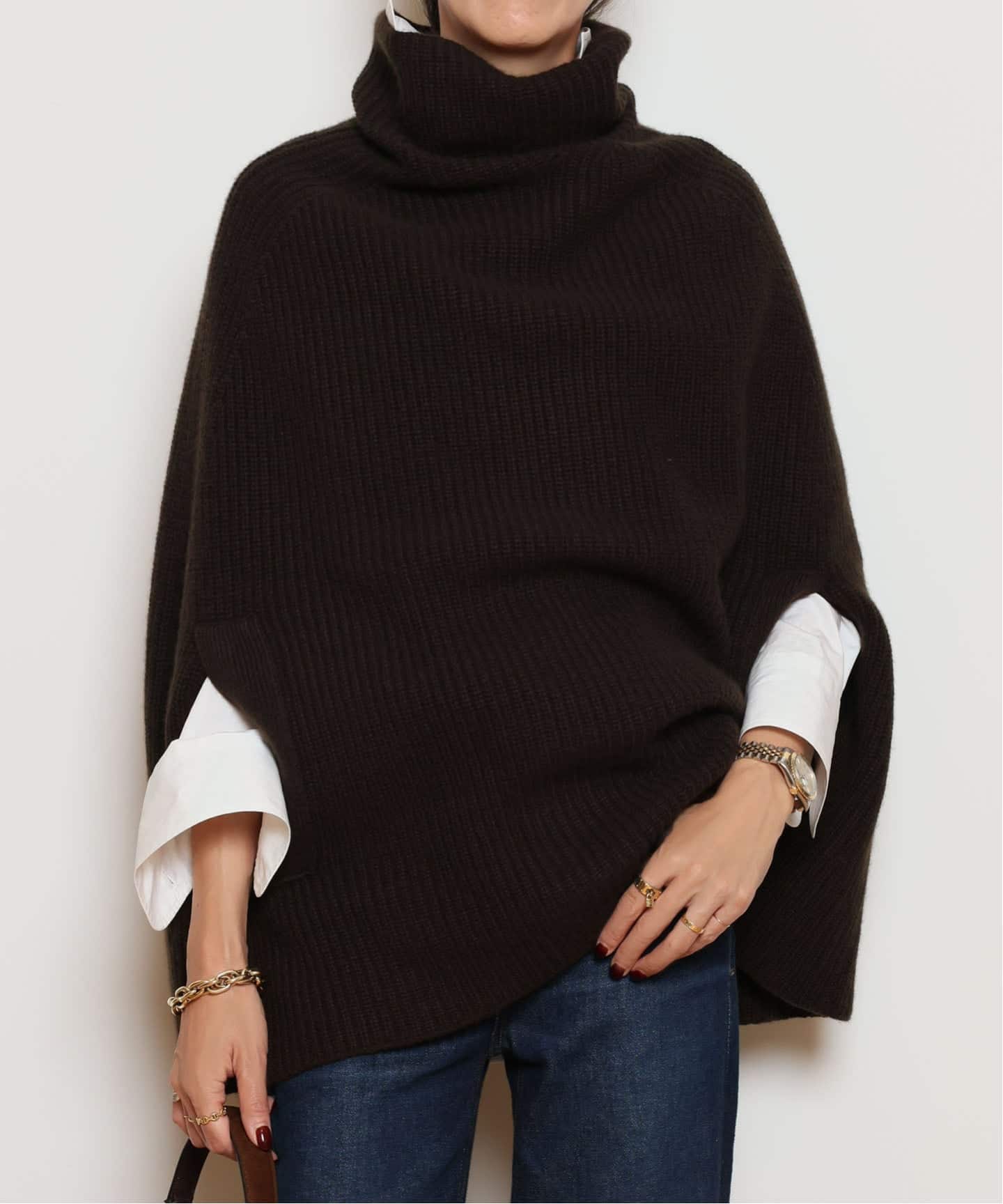 カシミアを贅沢に使用したニットポンチョ!今シーズン気分のブラウンのワントーンで着こなしたい。