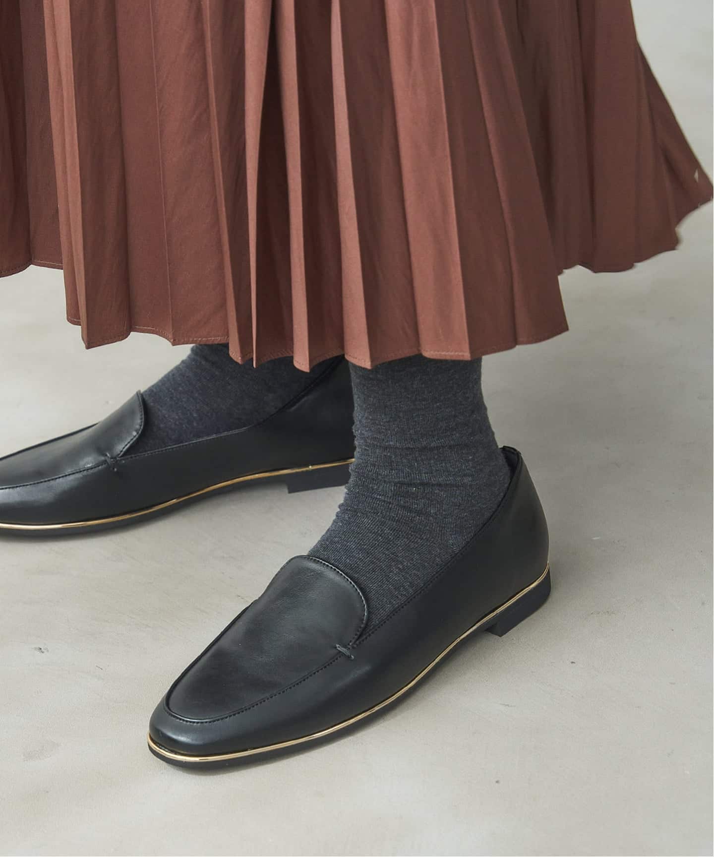 シンプルなローファーデザインにソールのメタルラインが映える一足。