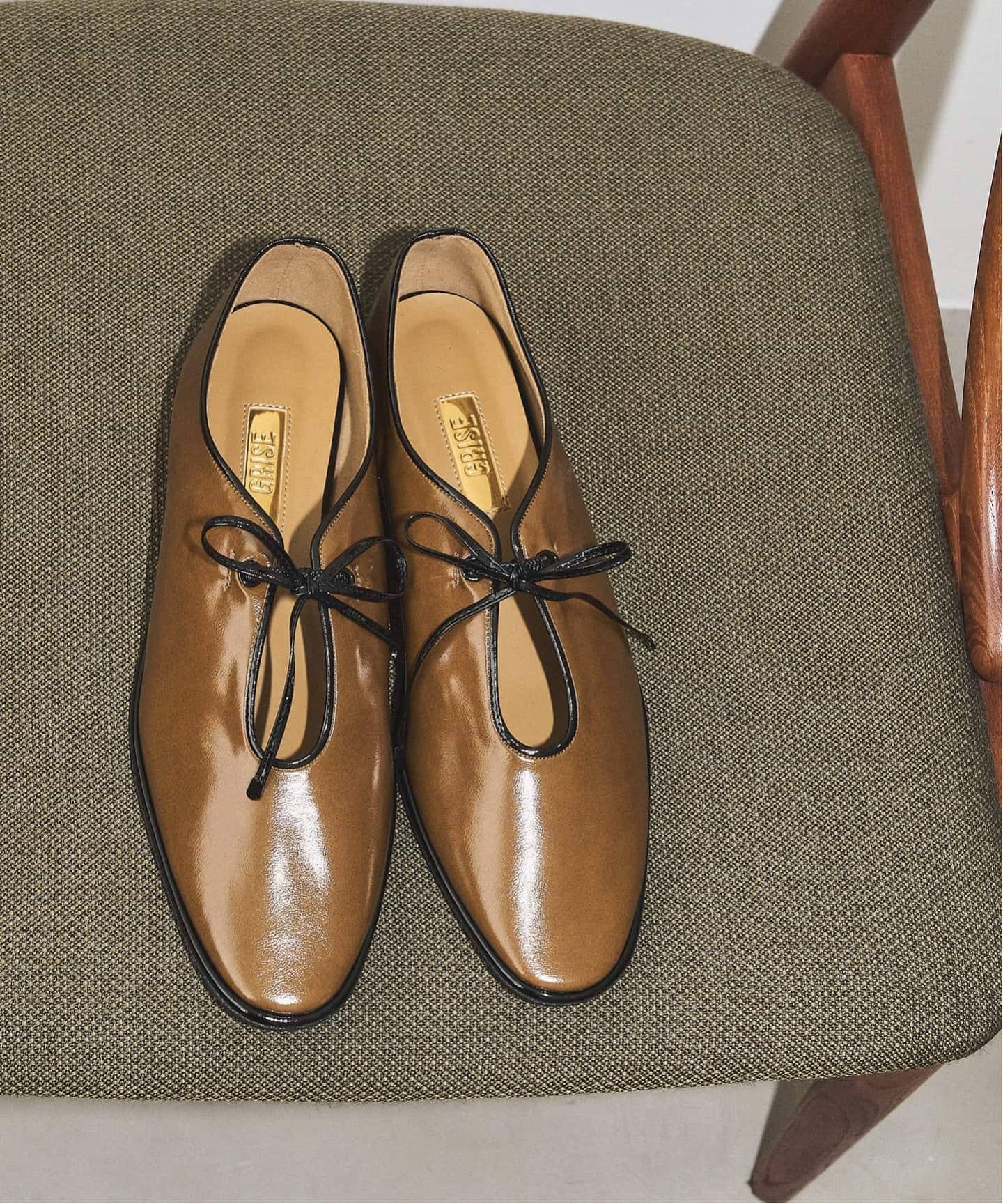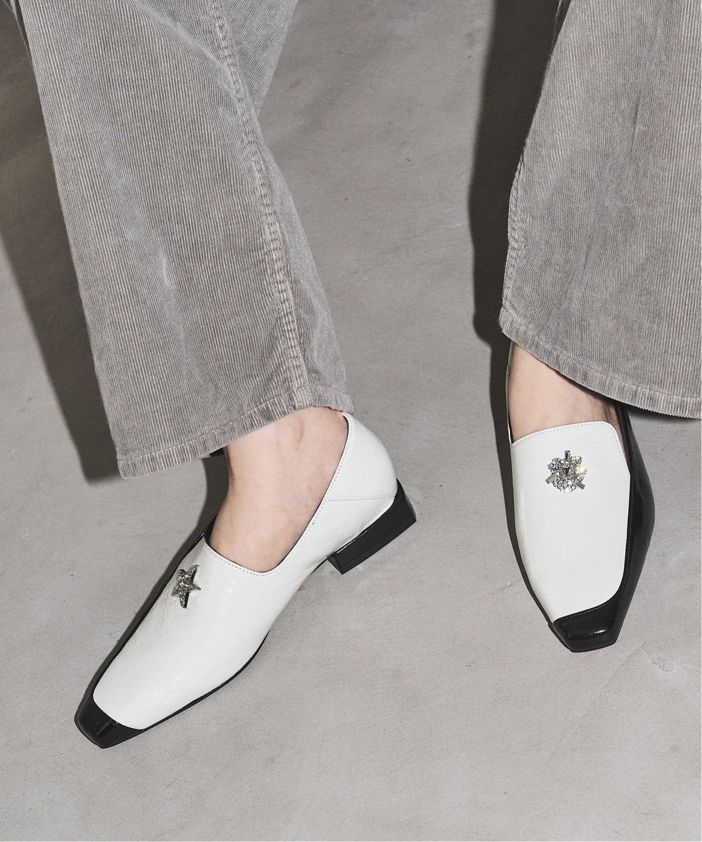 テーマでもあるSURREALをイメージした、左右デザイン違いのオーナメントがシンプルなローファーに程よいニュアンスを与えてくれます。