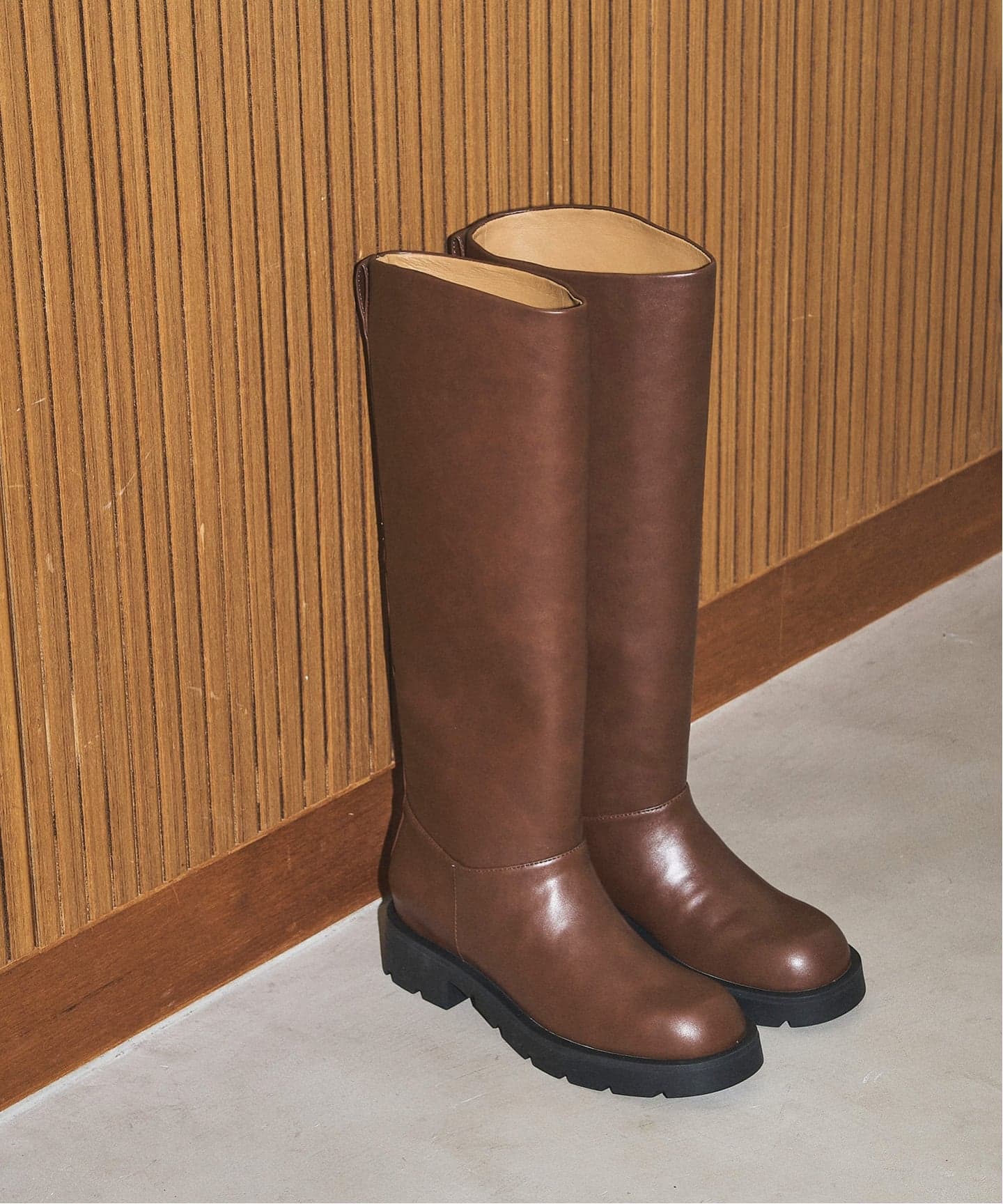 つま先とソールにボリュームを持たせた、ワイドシャフトシルエットが今年らしいロングブーツ。筒周りにゆとりを持たせたオーバーシルエットで足のラインを美しく演出します。