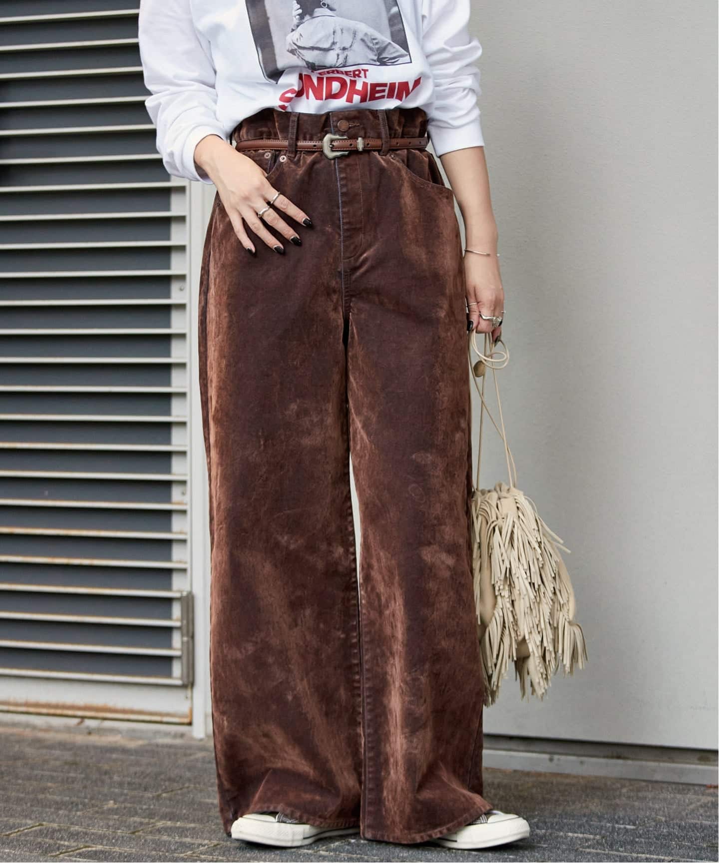旬なスタイルが叶うフロッキー加工のバギーデニム。