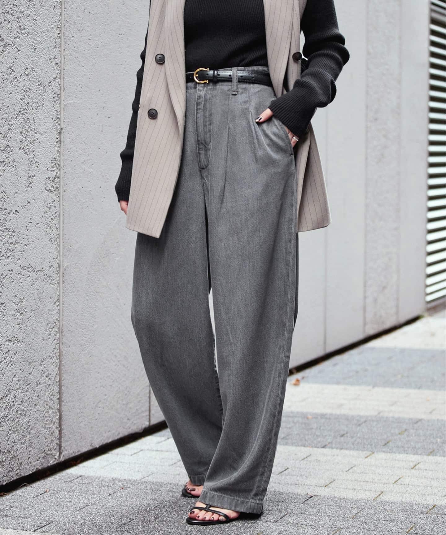 タック入りのトラウザーディテールで、ほどよいワイドストレートシルエット。