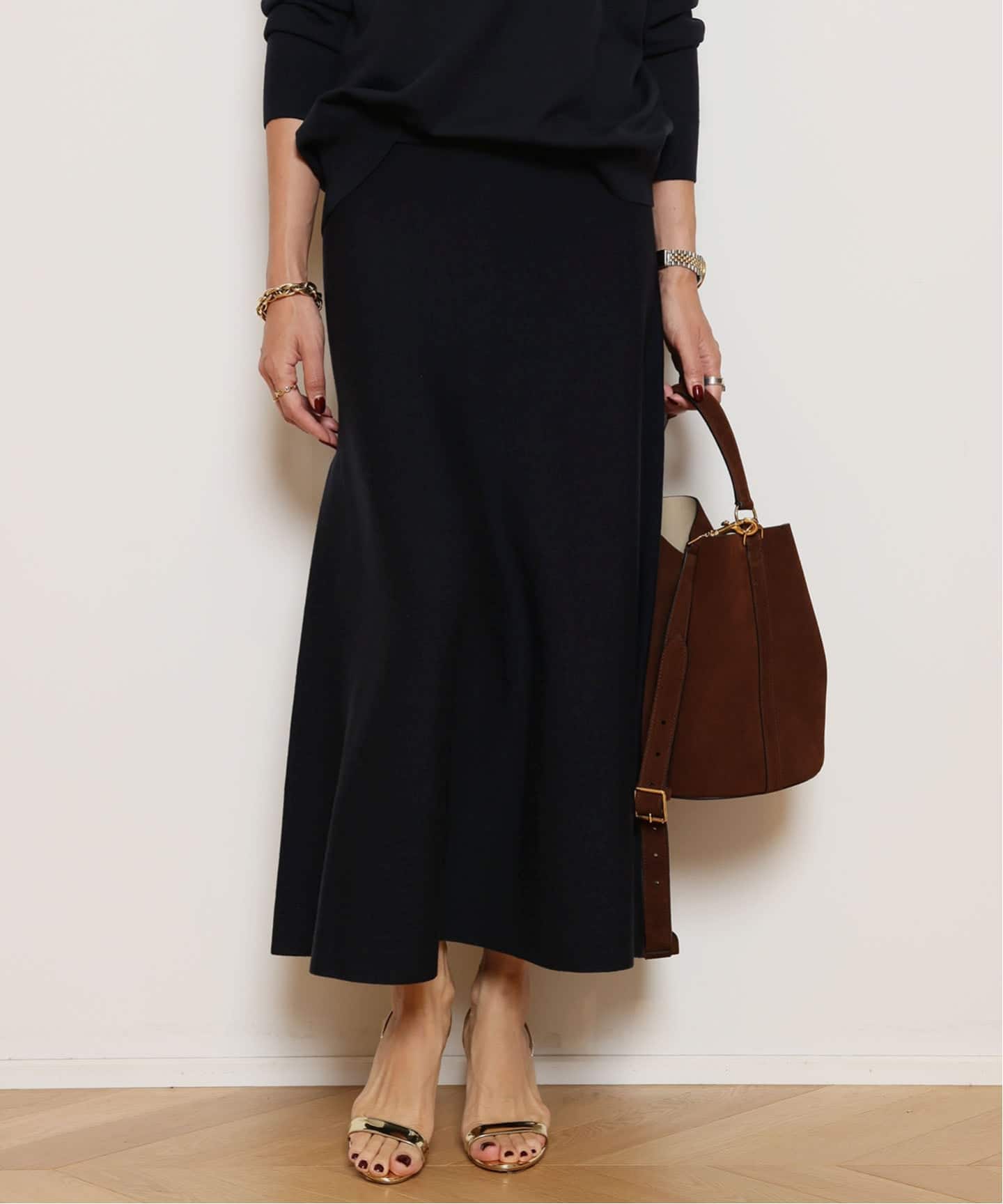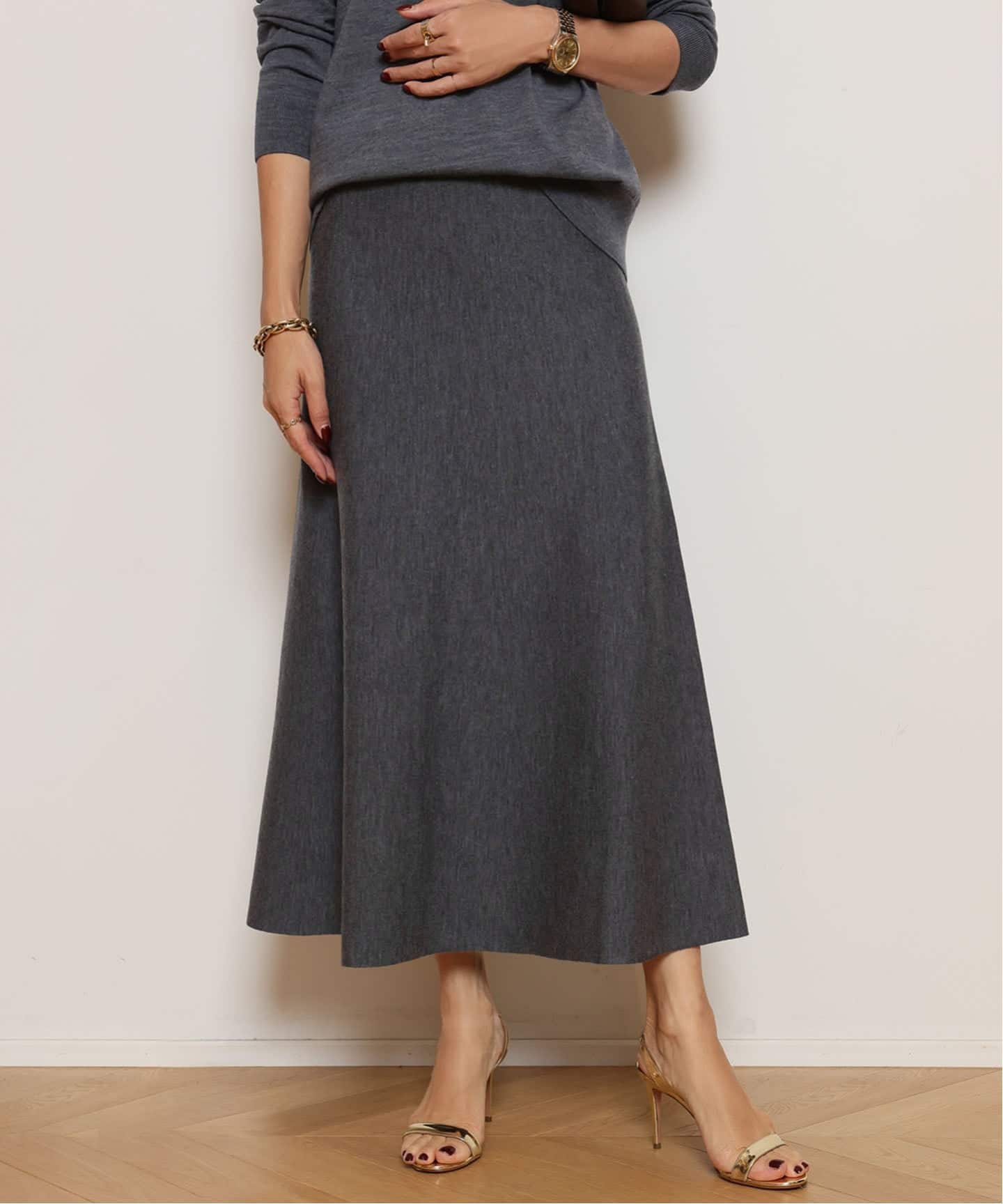 スカートはミラノリブ編みで緻密に仕上げ、ヒップにほどよくフィットしながらもラインを拾いにくい、美しいフォルムが魅力。