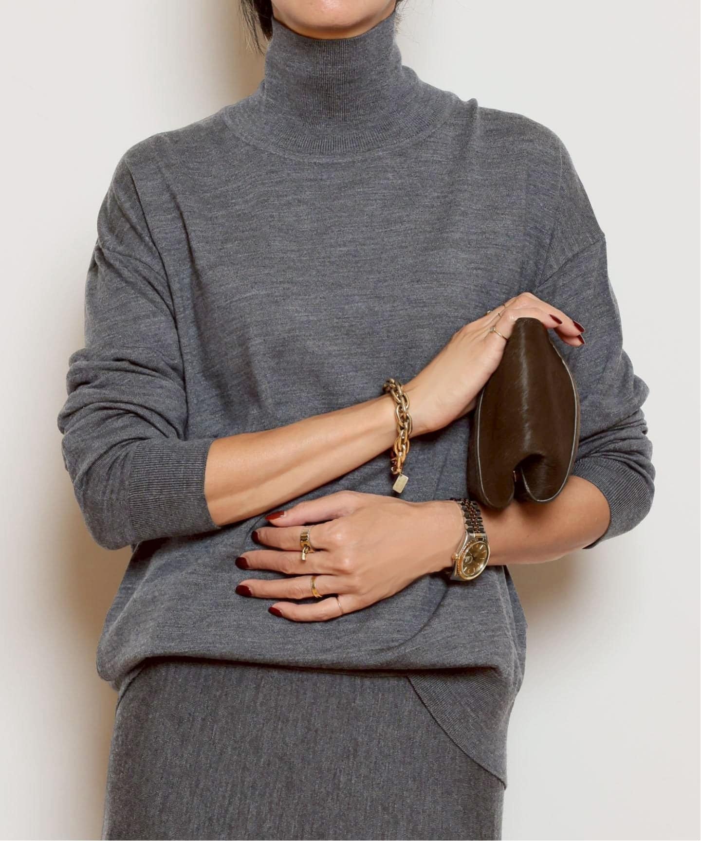 ひと目で心を奪われるような、端正な佇まいのニットアップ。特殊な編み地でハイゲージながらも程よく厚みを持たせ、上質な温もりを感じる一枚に。ハイネックは首にすっきりと沿う設計で、顔まわりを美しく引き立てます。シューズやバッグの合わせ次第で、女らしくも、トラッドにも、スポーティにも。スタイルを選ばず、自分らしさを楽しめる冬の相棒です。