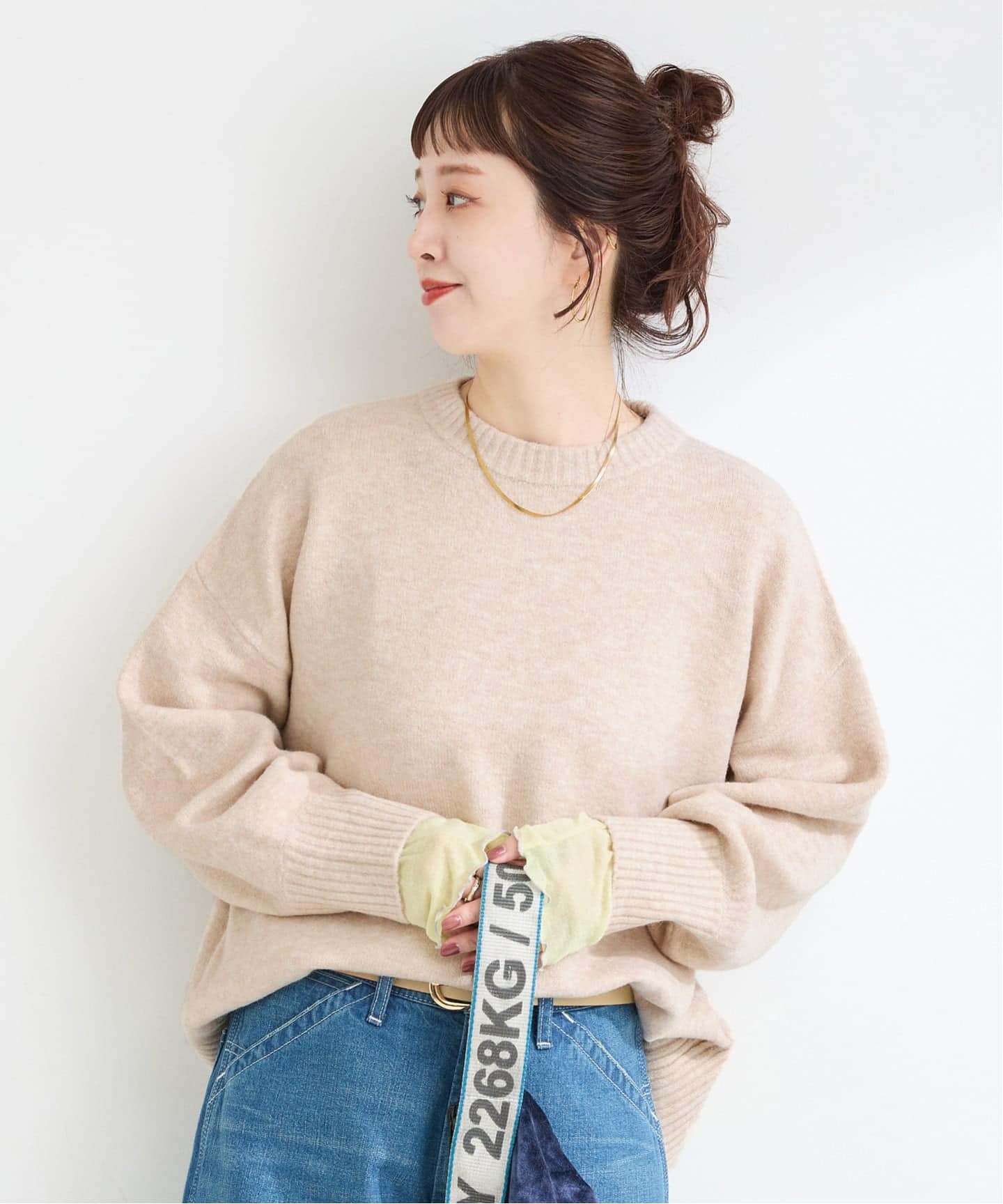 ポリウレタン混でストレッチ性のあるもちもちとした触り心地が特徴で、ビッグサイズになりすぎず、レイヤード可能な程よいサイズ感。定番のクルーネックニットはシンプルながらこだわりの詰まった女性らしいシルエットの一枚に仕上げています。