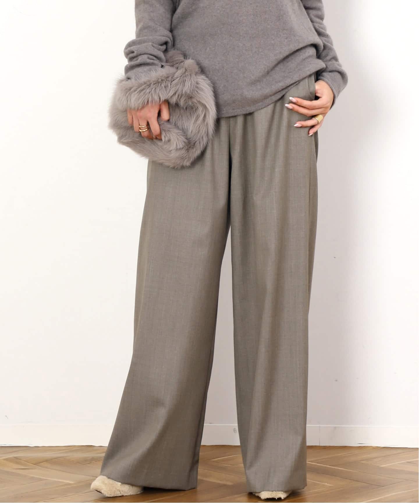 品のある梳毛を使用したEVERYDAY I LIKE. のワイドパンツです。