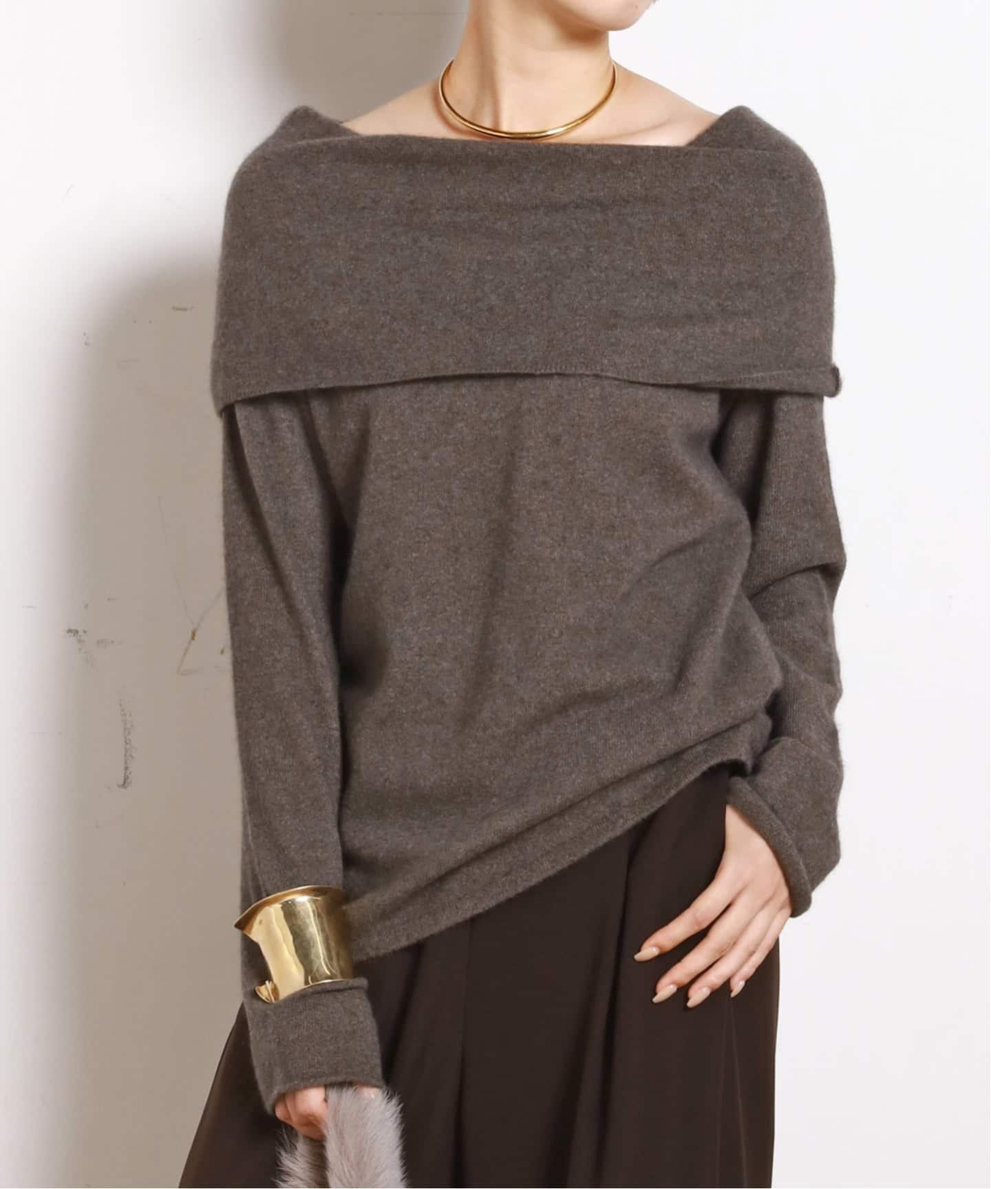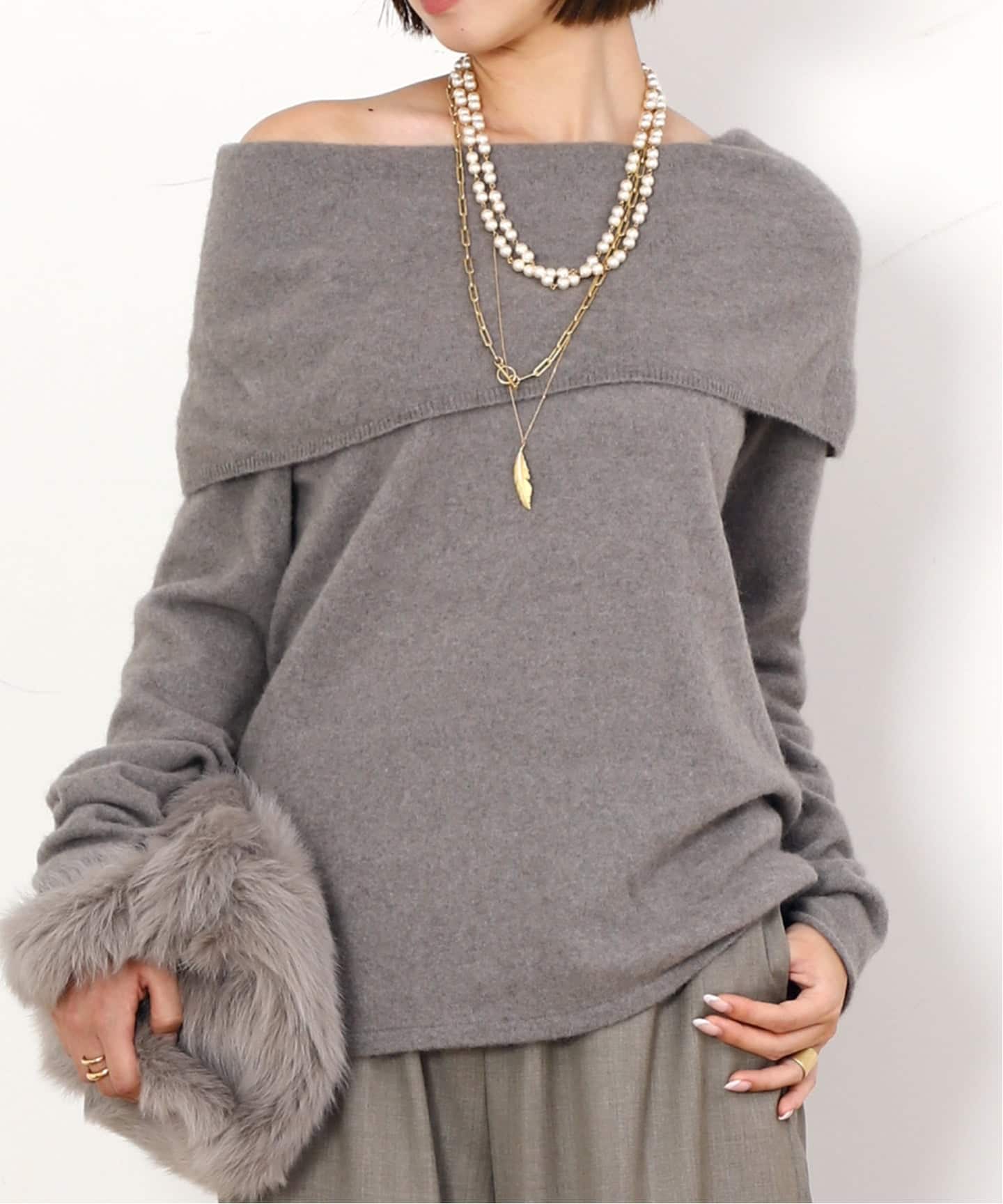 ふわふわのニット地とデコルテ見せのシルエットが女性らしい印象のオフショルダーニット。
