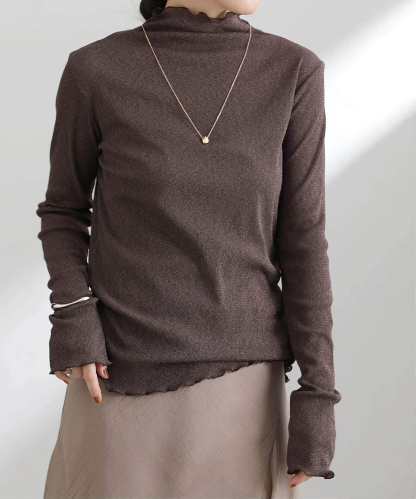 【洗える】ラメリブハイネックカットソー