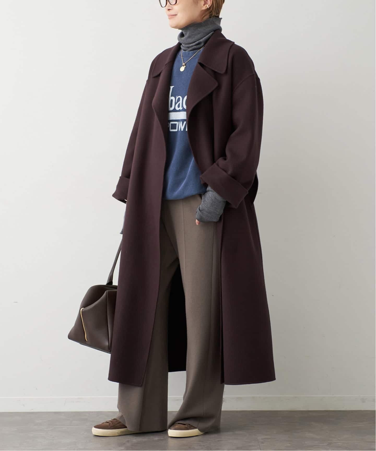 ヴァージンウール糸を使用した、ソフトで肌触りの良い、ゆったりとしたシルエットのロングコート。