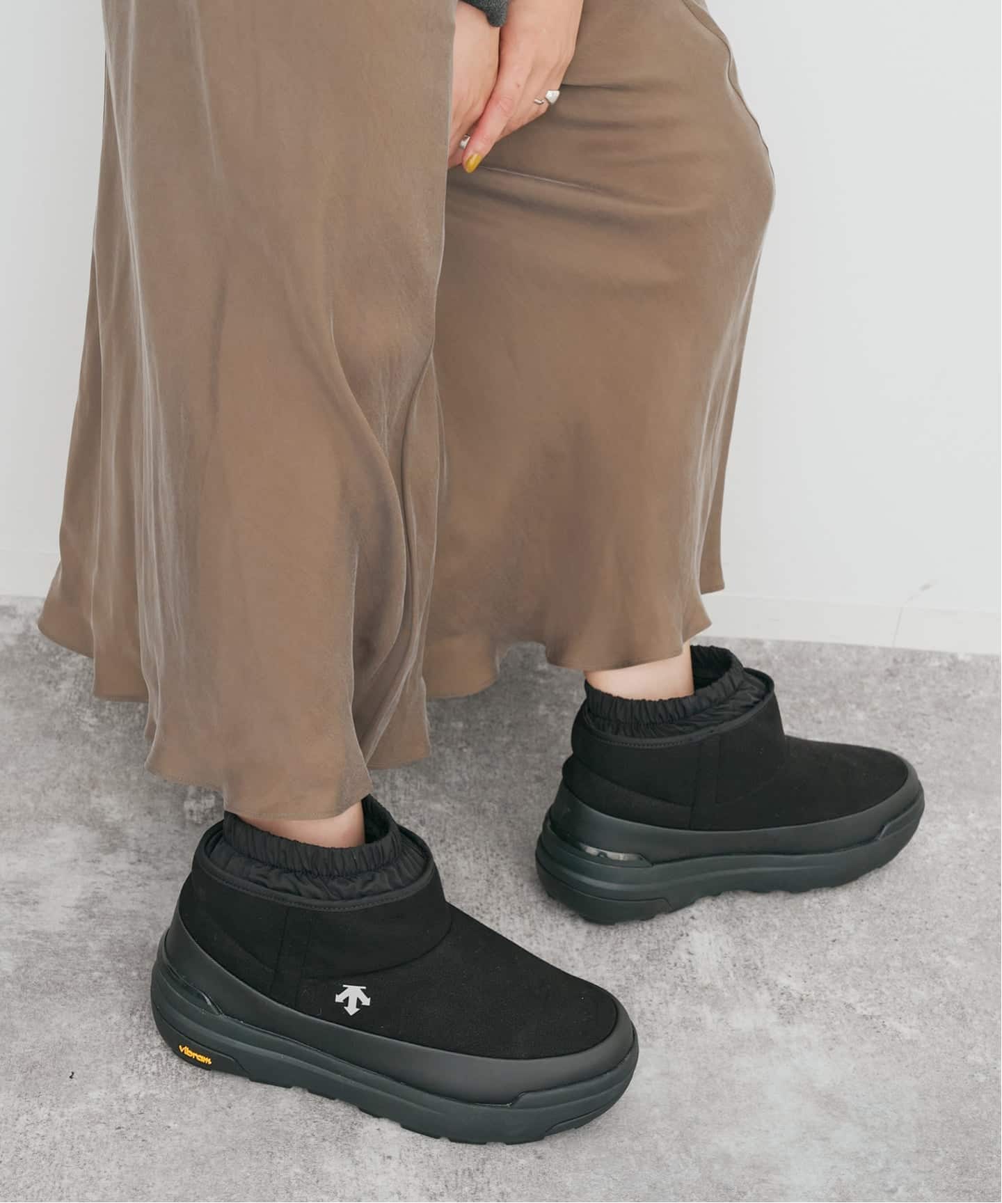 程よいボリューム感が足元にバランスを生み、旬のスタイリングを引き立てます。