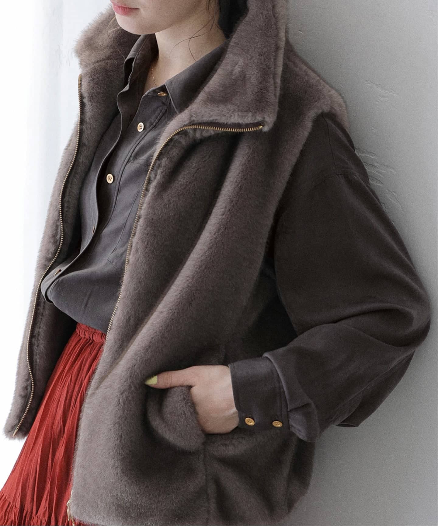 ほどよくゆとりのあるシルエットで、厚手のニットの上からでもすっきり羽織れるのが嬉しいポイント。
