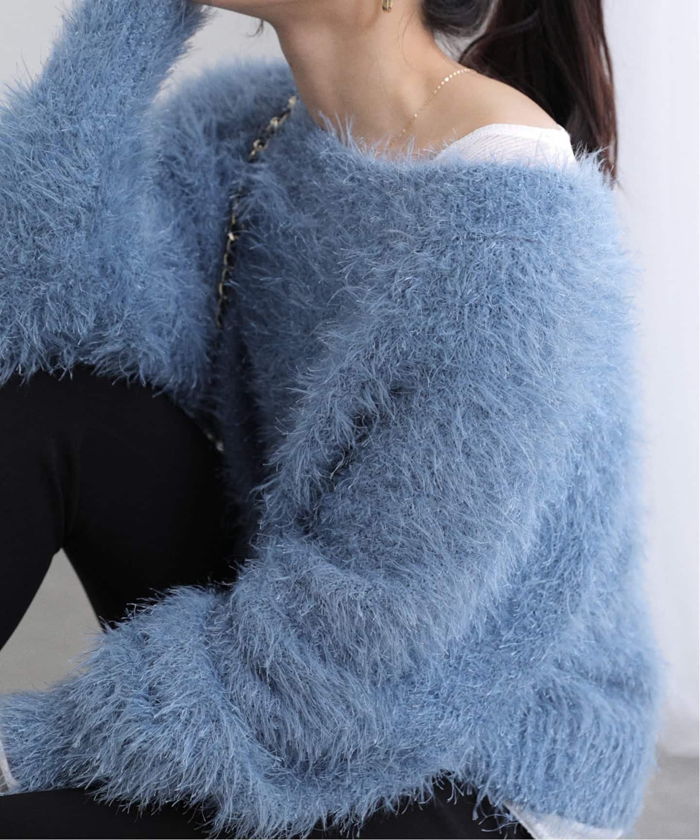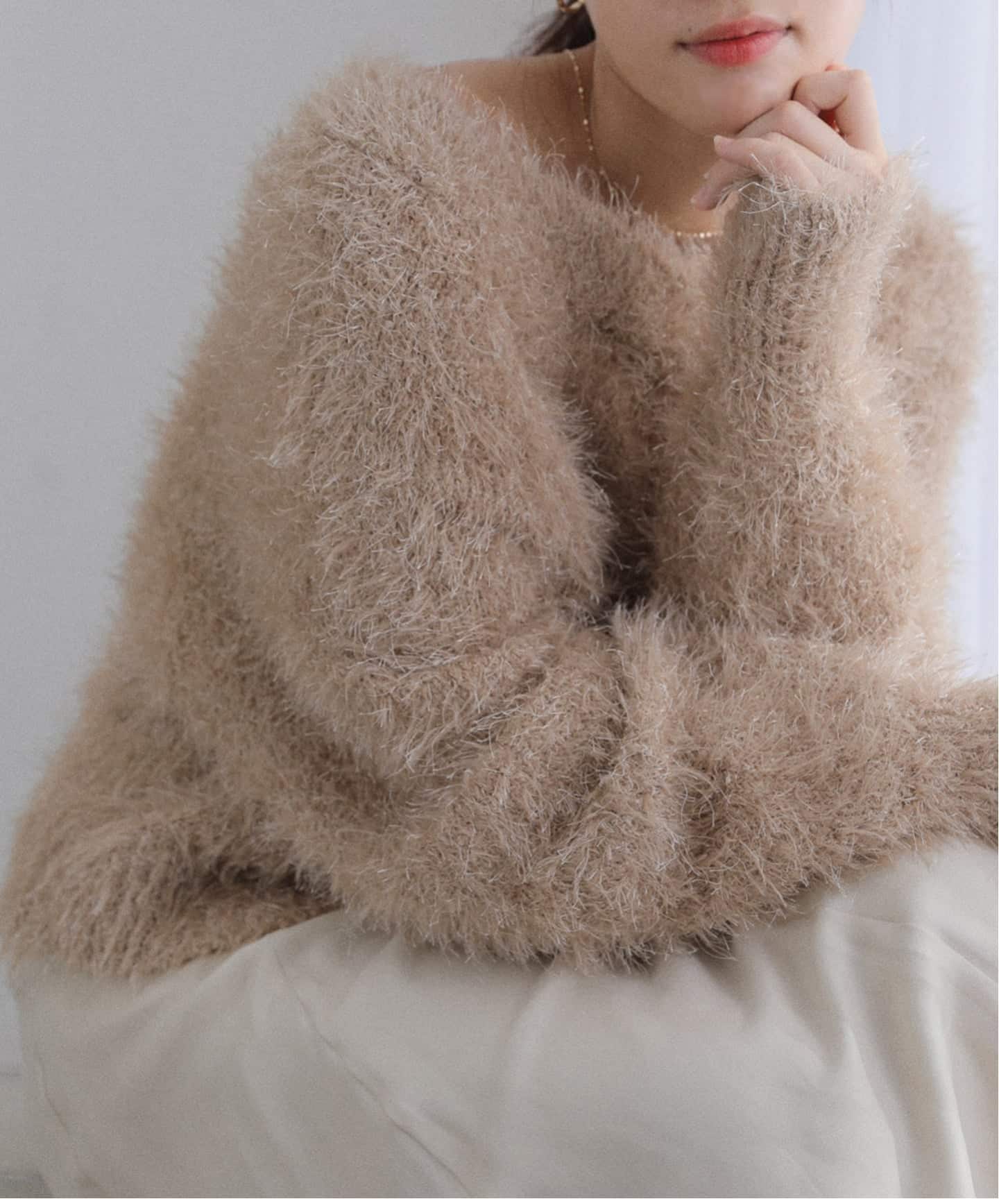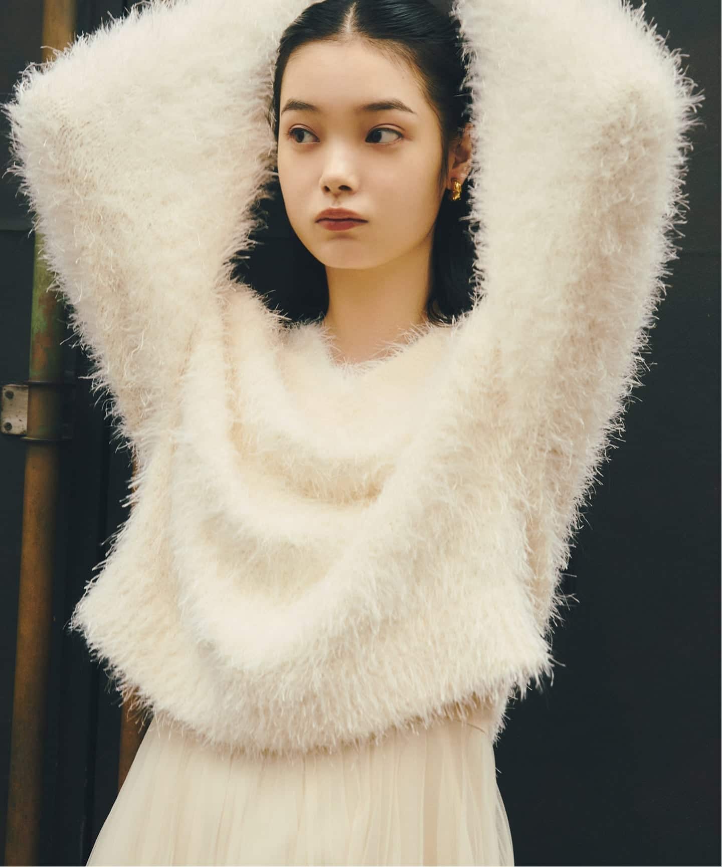 ふわふわとしたフェザー素材が目を惹く、大人フェミニンな2WAYニット。