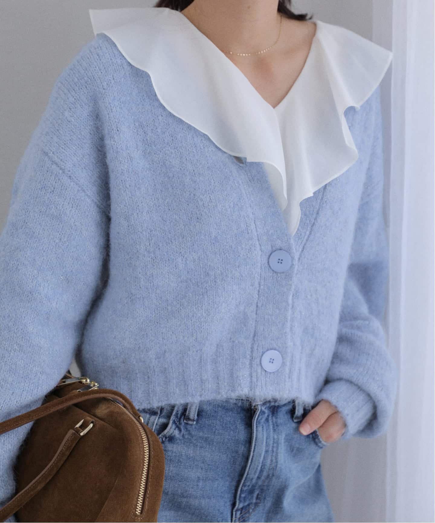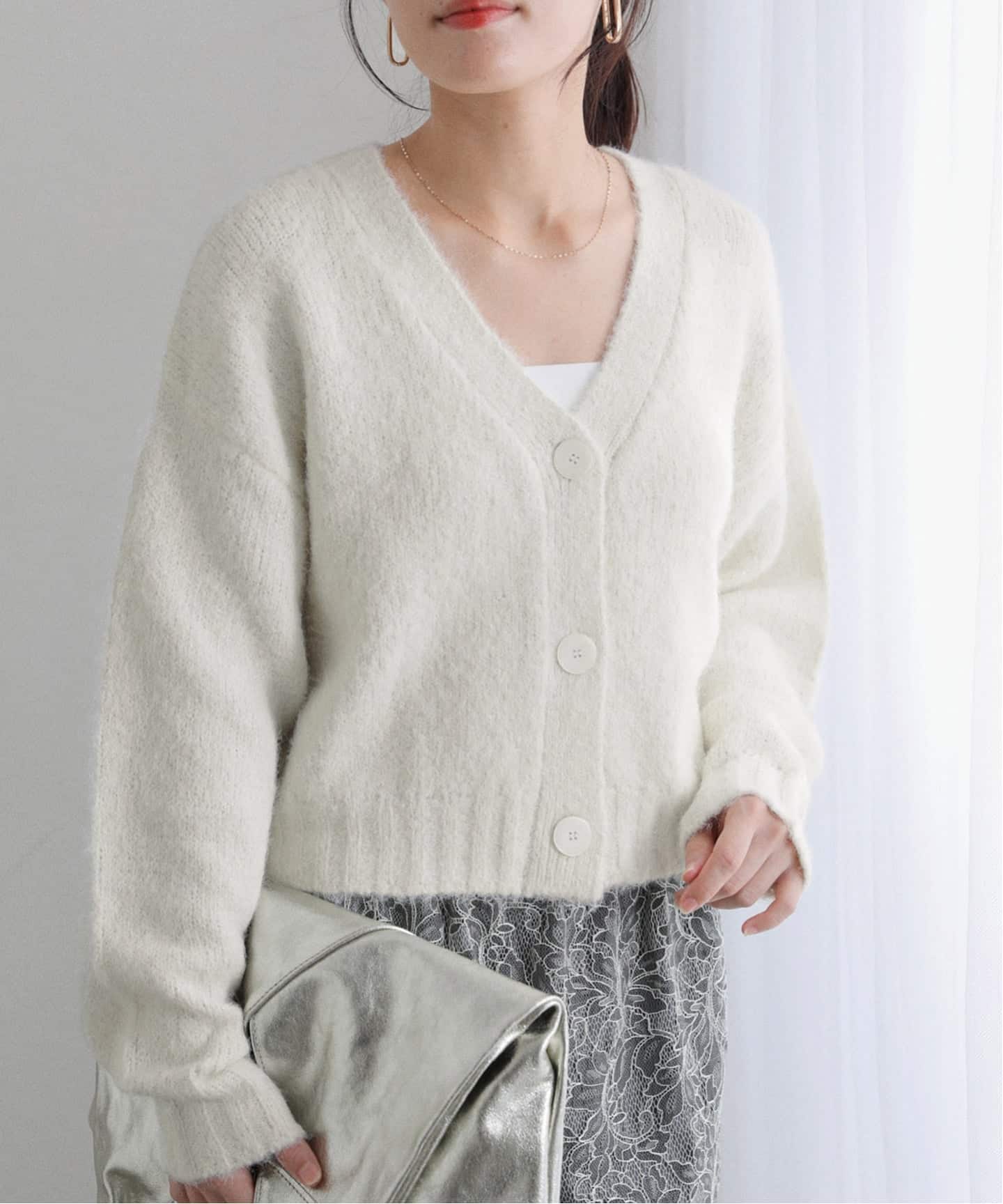 ふんわりとした風合いが魅力のVネックカーディガン。