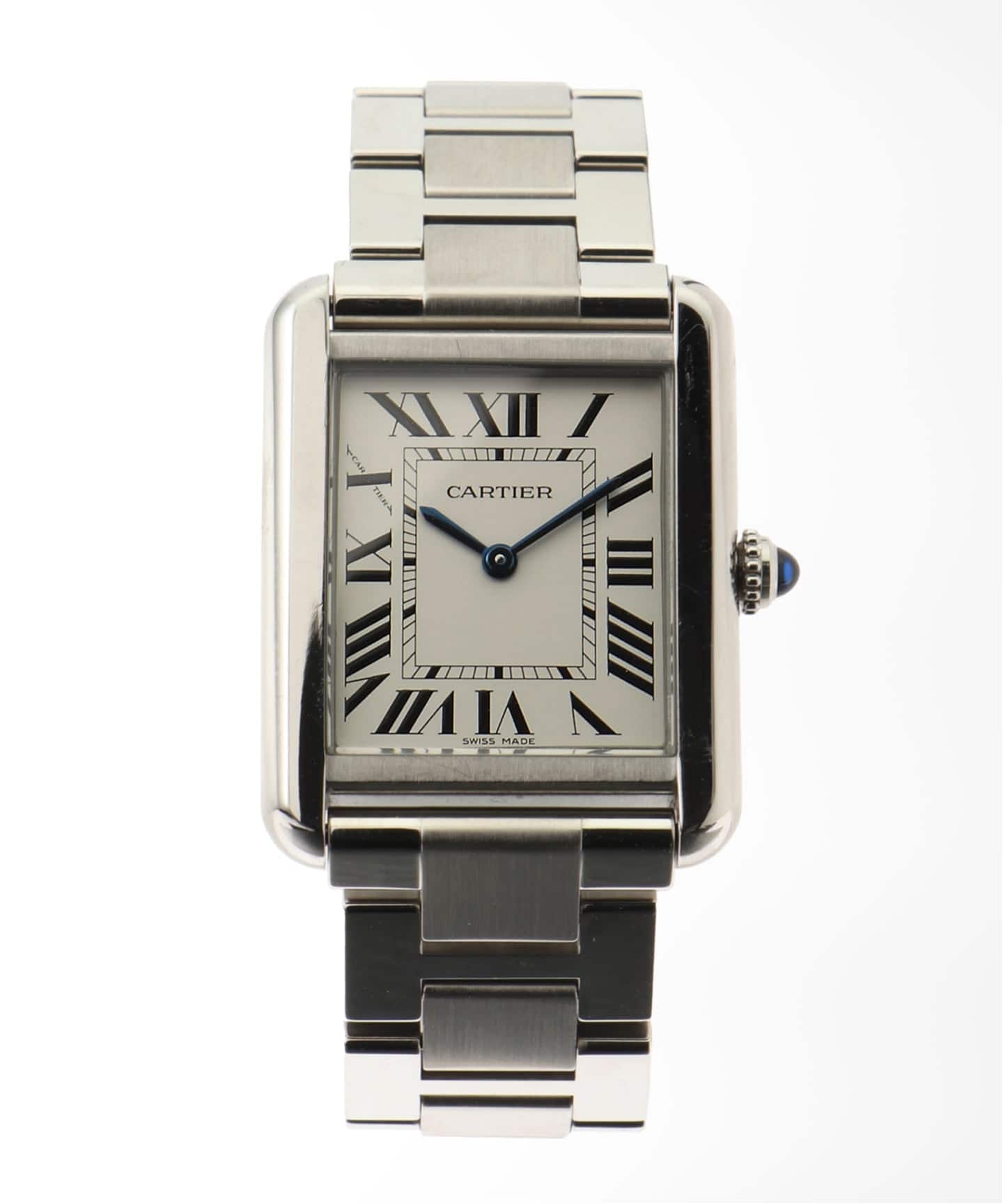 カルティエのタンクソロは2004年に発表。タンクのアイコニックなデザインは残し、現代に合わせたアップデートが加えられたコレクション。都会的なニュアンスを与えてくれるタンクソロは、曲線を抑えたフラットなケースや、はっきりとした輪郭のダイヤルデザインが特徴です。
