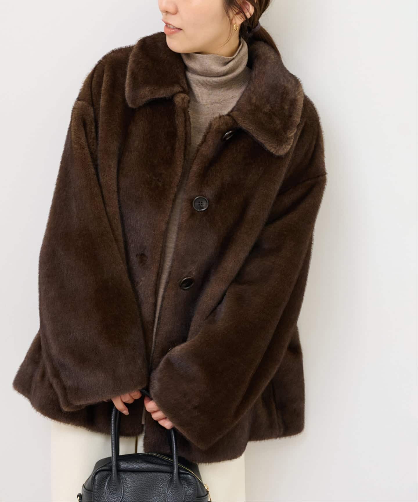 丸みのあるフォルムと大きめの襟で女性らしく仕上げています。