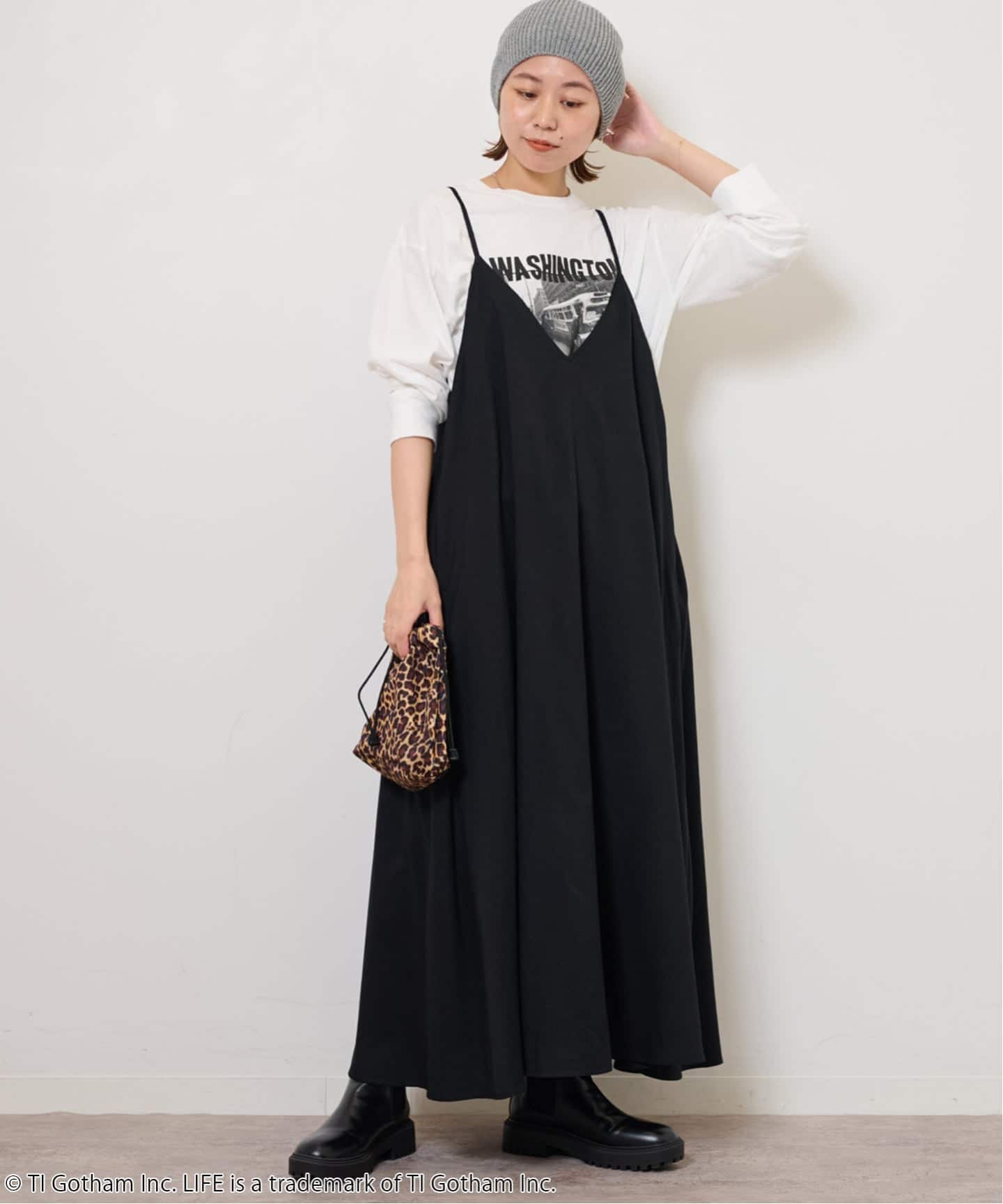 二重の裏地付きなので一枚ではもちろん、タイツやパンツとのレイヤードもお楽しみいただけます!